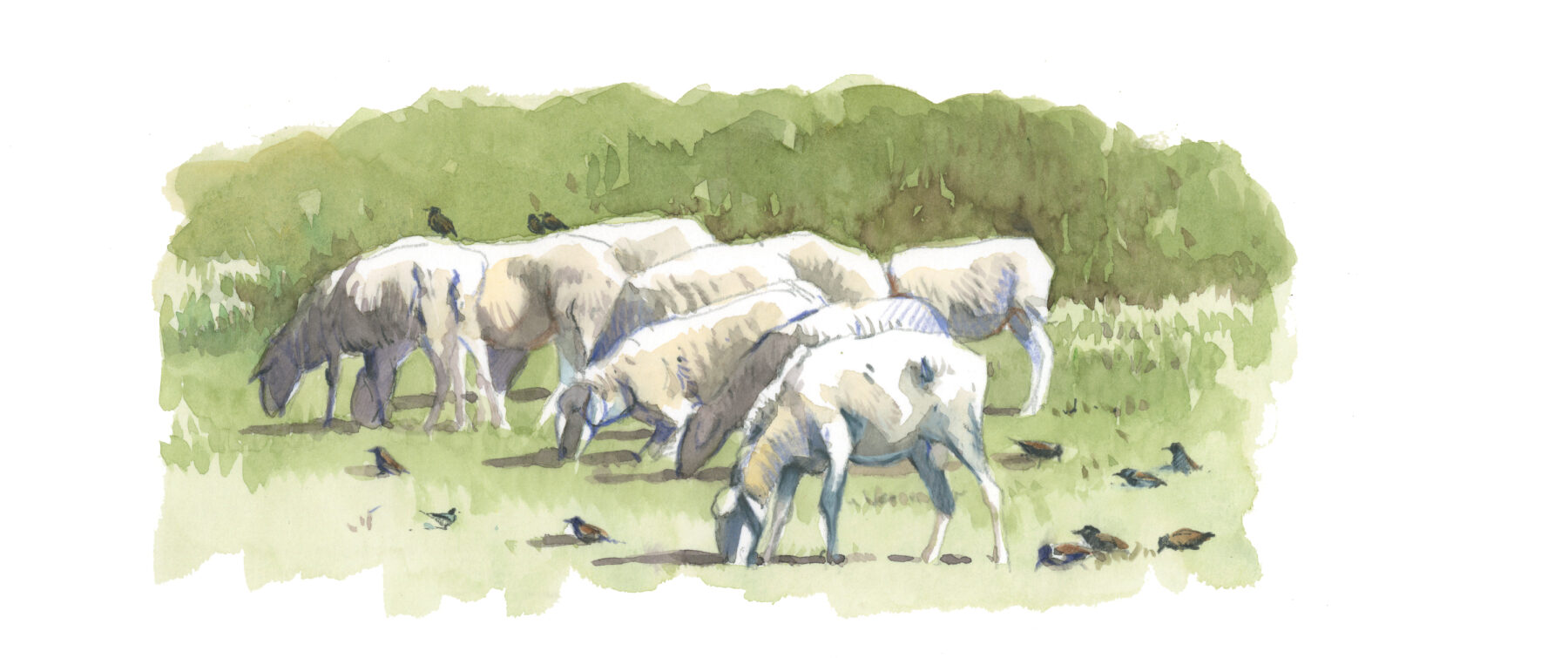 Mon mâle, justement, continue de se chauffer la voix. Ailes écartées et tremblantes, bec jaune grand ouvert, ses phrases me semblent plus longues et plus complexes au fil des jours. Comme le printemps est seulement esquissé, ce crooner aux mille voix abandonne de longues heures son poste de chant pour rejoindre les troupes lâches de ses congénères autour du village. La pâture à moutons fait partie des lieux de rendez-vous préférés de ces infatigables picoreurs.