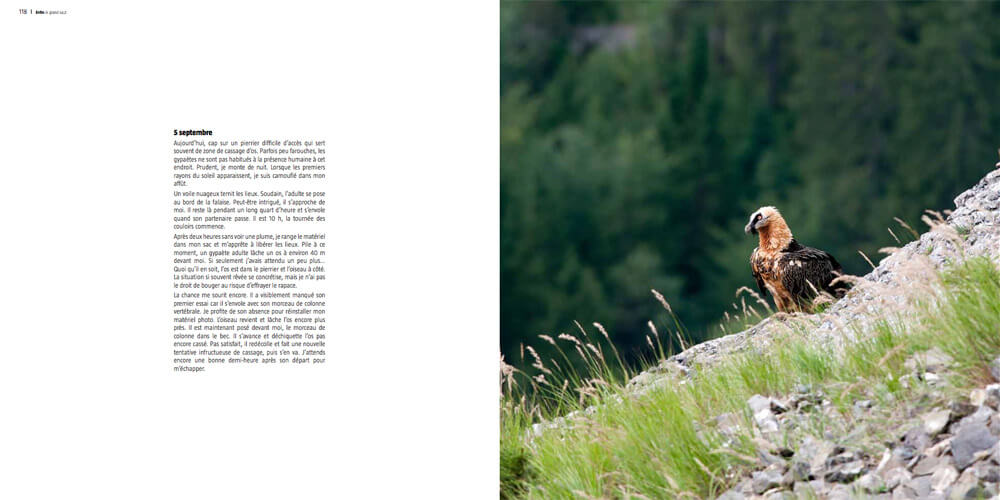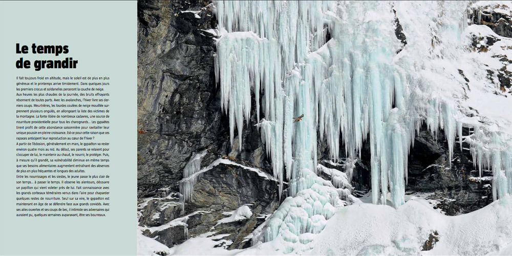 Chapitre après chapitre, leurs anecdotes authentiques et leurs clichés nous guident à la découverte de la vie étonnante de ce géant montagnard. Saviez-vous par exemple qu’il niche en plein hiver, insoucieux de la neige et des frimas? Et qu’il se colore une partie des plumes avec de la boue ferrugineuse ? Vous allez aussi apprendre comment ce mangeur de moelle casse les os les plus grands pour se nourrir!
