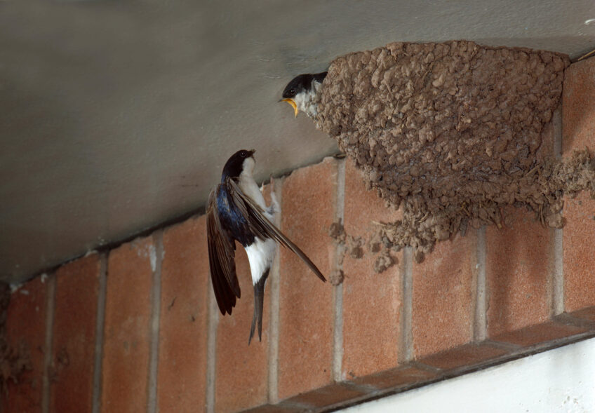 Quelle horreur, on va avoir des fientes sur la façade. Mais non, c’est tout simple, il suffit de faire comme le boucher, grand passionné d’hirondelles. Fixer une planchette sous les nids et la nettoyer une fois par année.