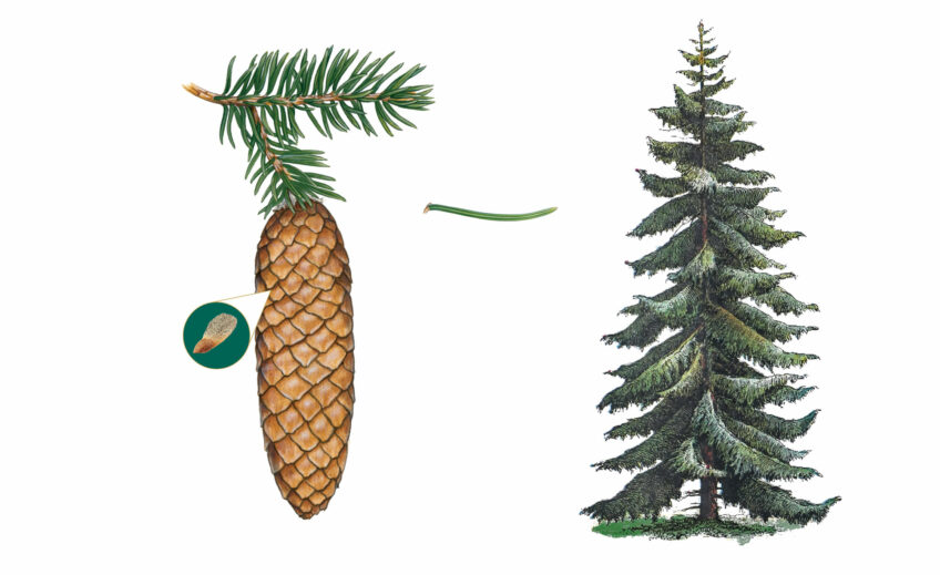 Bien qu’il soit surnommé par endroits sapin rouge, l’épicéa n’est pas officiellement un sapin. Les botanistes réservent en effet cette appellation aux seuls arbres du genre Abies. Pourtant, vestige d’une confusion de longue date, le nom scientifique de l’épicéa, Picea abies, signifie épicéa-sapin. Pire, au XVIIIe siècle, Linné l’avait même baptisé Pinus abies, soit pin-sapin. Malgré leur ressemblance morphologique et leur fréquente cohabitation, à l’origine de ces mélis-mélos, le sapin blanc et l’épicéa sont de lointains cousins dans la famille des pinacées. En effet, le genre Picea est plus proche des pins et des mélèzes que des vrais sapins. Quelle poisse !