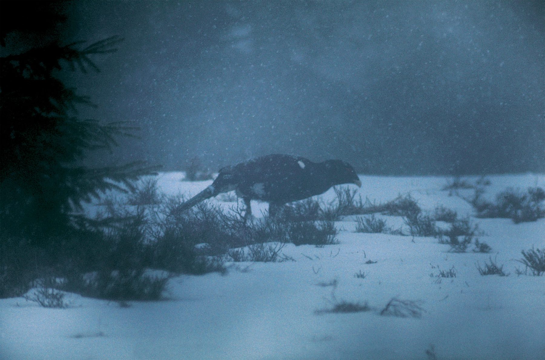 Que la tempête fasse rage, que la température descende à -30° C, les tétras n’ont rien d’autre à se mettre sous le bec que ces aiguilles. Malgré un système digestif adapté à ce menu rustique, l’amaigrissement est inéluctable. Même sans bouger, les coqs dépensent chaque jour plus d’énergie qu’ils ne peuvent en absorber. On comprend dès lors leur extrême sensibilité à tout dérangement. Quelques envols précipités en décembre-janvier et ils risq