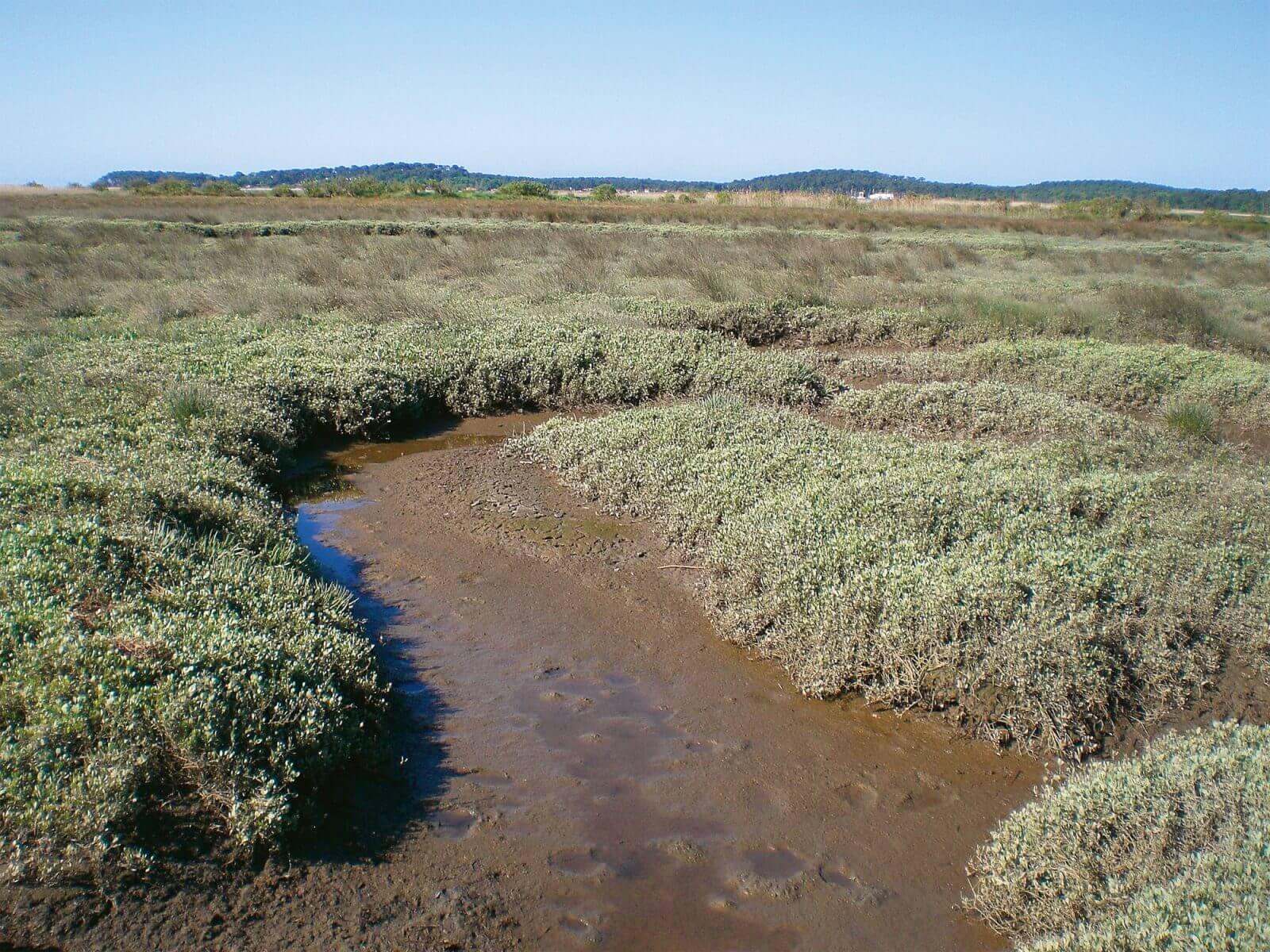 - Suivre le chemin entre les anciens réservoirs à poissons et les prés salés.