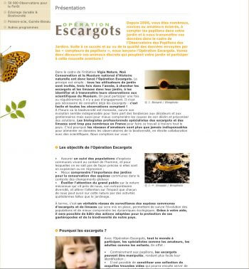 En France, Noé Conservation et le Muséum national d'histoire naturelle vous proposent de participer à l'Opération escargots. De quoi s'agit-il ? D'évaluer la biodiversité en mollusques de votre jardin ou d'un autre endroit que vous fréquentez volontiers. Tout le monde peut participer, adultes ou enfants, spécialistes ou débutants. Un guide des espèces, des fiches d'identification et d'autres outils disponibles en ligne vous permettront de devenir de vrais experts. En saisissant vos observations dans une base de données nationale, vous participerez à une meilleure connaissance de la situation de 31 escargots et limaces.