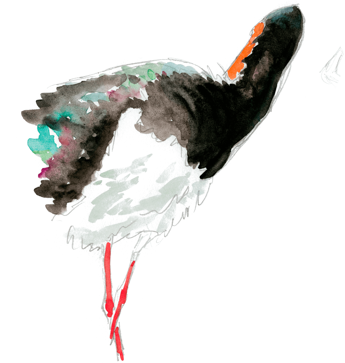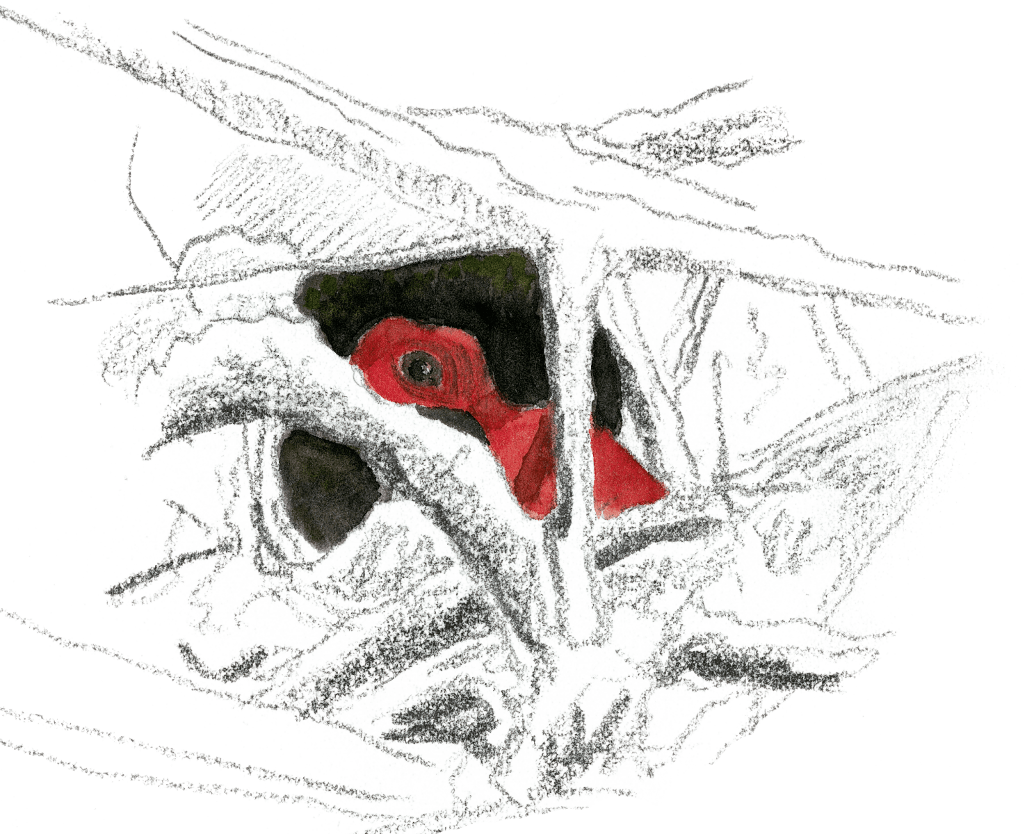 15 avril 6 h 10 du matin. La hulotte se tait. Un peu de lumière s’infiltre entre les troncs. En zoomant au maximum dans mon télescope, je parviens à apercevoir un iris sombre entouré d’une peau rouge. C’est tout, mais c’est beaucoup. Depuis mon affût dissimulé avec d’infinies précautions, impossible de voir le nid à l’œil nu. Les feuilles tendres des charmes et des chênes forment un écran de sûreté entre la cigogne et moi. Elle couve, c’est la grande nouvelle du jour. Depuis combien de jours ? Je l’ignore. Mâle ou femelle, impossible à dire. Ils se ressemblent comme deux gouttes d’eau.