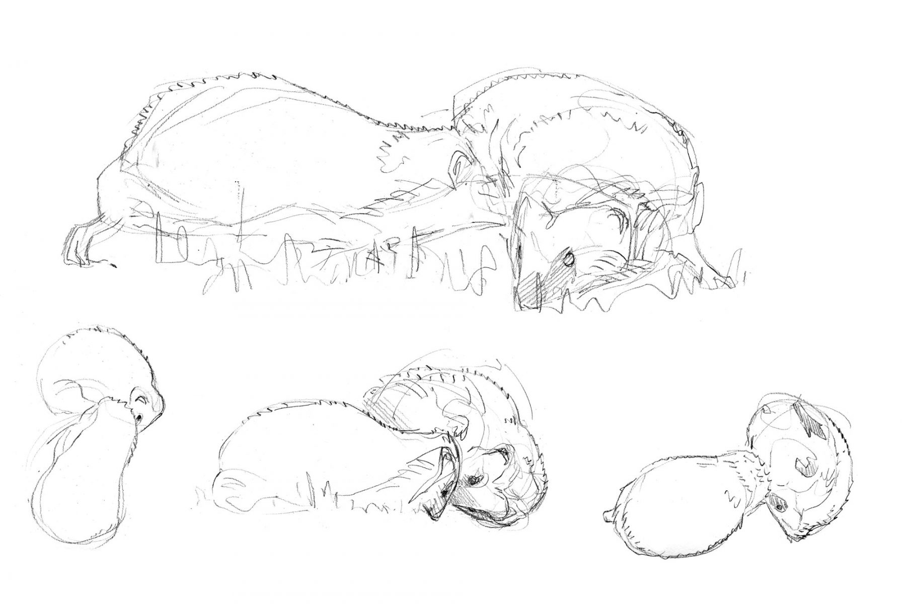 Les échauffourées se poursuivent, mais je note de nouveaux comportements. Jusqu’ici réservée, la petite femelle se rapproche du ring et semble évaluer la prestation de ses prétendants. Elle cherche même le contact avec certains d’entre eux, n’hésitant pas à les bousculer gentiment du groin pour attirer leur attention lorsqu’ils sont occupés à manger. En général, l’élu ne se fait pas prier longtemps.