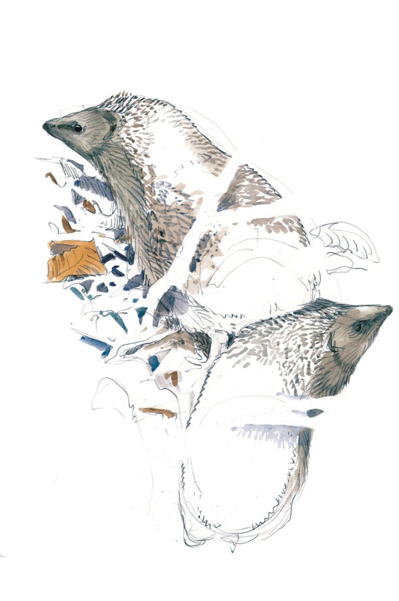 Je décide de changer de stratégie, convaincue que l’intrigue se joue à présent sous la haie, à l’abri des regards. En début de soirée, je déplace donc le piège sous les épais buissons. Et bingo ! à 20 h 31, les enregistrements révèlent un jeune individu se frayant un passage entre les branches. Il doit être à peine plus âgé que Pic-Pic, le hérisson de mes 9 ans. Derrière lui, une copie conforme emprunte le même chemin. Combien sont-ils en tout ? Difficile à dire. L’un des jeunes tombe sur une limace. J’ai grand-peur d’assister à un gastéropodicide ! Perplexe, le gosse hume la loche… et puis non. Un peu trop grosse, sans doute.