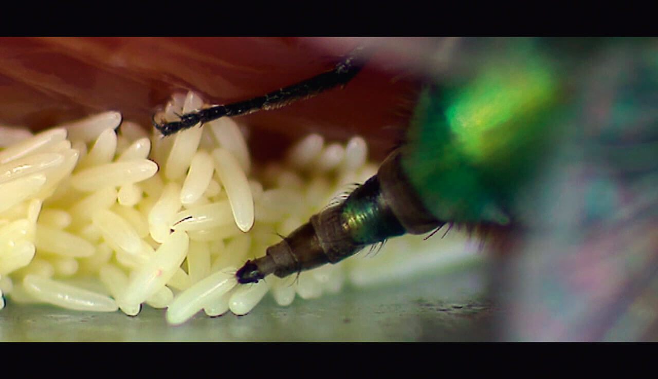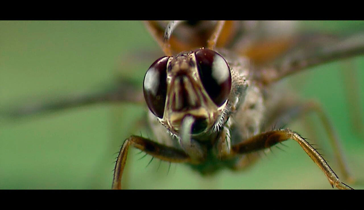 Oh oui ! La mouche est un animal très petit avec toutes les difficultés que cela suppose pour les prises macro : lumière, profondeur de champ… Mais c'est aussi une hyperactive difficile à suivre dans ses déplacements. Le plus compliqué a évidemment été en plein vol. Par chance, j'ai pu utiliser des caméras à haute vitesse et des séquences réalisées par des scientifiques avec des images ultra-ralenties.