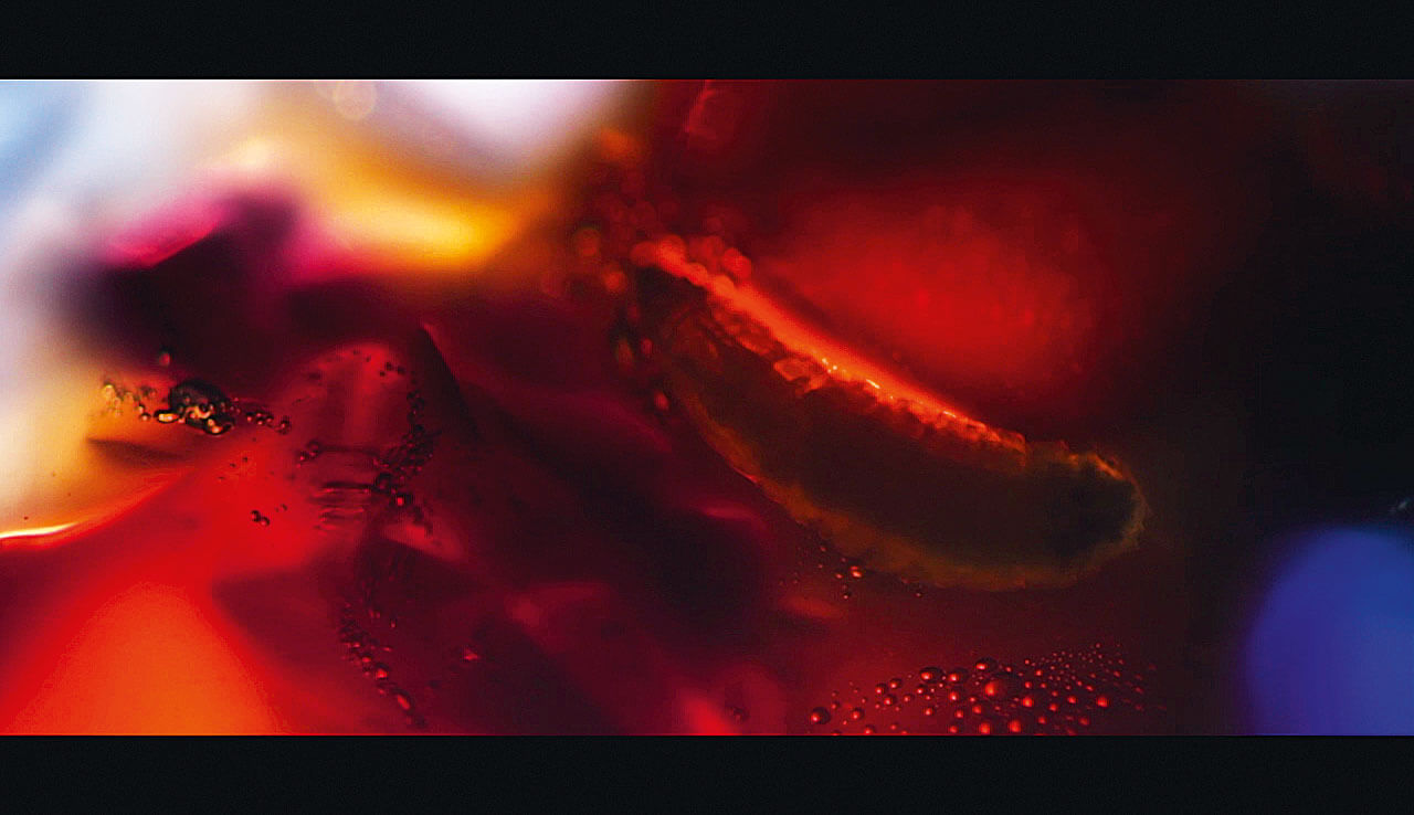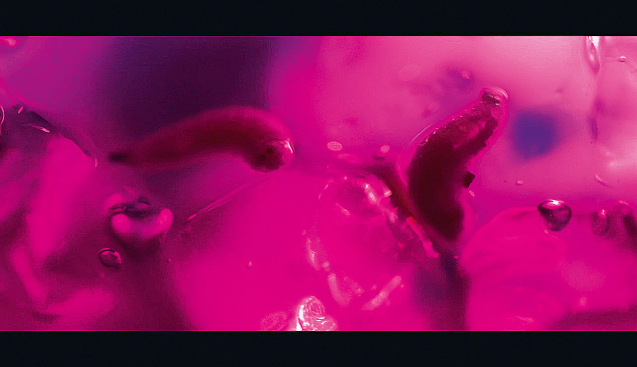 C'est voulu ! Je n'en pouvais plus de filmer des asticots sur fond brun dans des bouses. Alors, je les ai installés dans de la gélose transparente avec différents colorants. Le résultat est vraiment très beau.