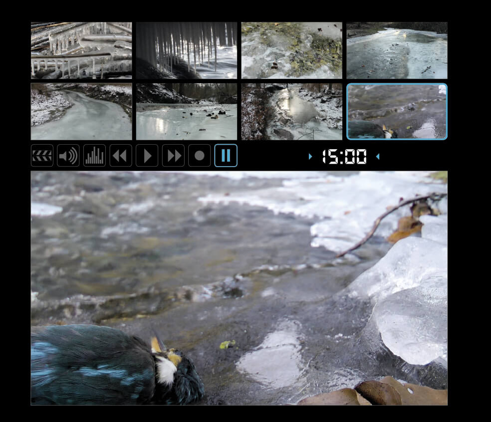 Un martin-pêcheur mort sur la glace au bord d’une rivière. Macabre trouvaille ou mise en scène ? « Après la pelote, il s’agit ici du deuxième et dernier plan du film qui a été scénarisé. Malgré la vague de froid qui a ravagé la population de martins-pêcheurs durant le tournage, je n’ai jamais trouvé d’individu mort dans la nature. J’imagine qu’ils se font rapidement dévorer par un renard ou un rapace. Blaise Mulhauser, conservateur au Muséum d’histoire naturelle de Neuchâtel, m’a donc prêté un exemplaire empaillé que j’ai mis en scène sur la Venoge. Il fallait juste qu’on ne voie pas le socle en bois. »