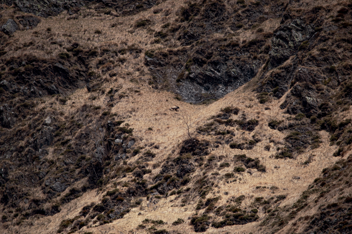 Chaque année, en hiver, de lointaines lumières semblent danser sur les montagnes pyrénéennes à la tombée de la nuit. Un matin, suite à l’observation de ce spectacle intriguant, me voilà partie en vagabondage dans la vallée d’Aspe. Jumelles en main, je scrute l’horizon dans l’espoir d’apercevoir le vol bien caractéristique de ces rapaces à l’envergure démesurée, qui me fascinent tant. Du vautour fauve au percnoptère d’Égypte en passant par le gypaète barbu, tous veillent sur leur territoire avec grande attention. Mes yeux s’accrochent aux diverses matières qui composent les lieux. Je suis sensible aux enchevêtrements des végétaux dans la roche et à la valse des ombres qui les met en lumière. Je me plonge dans la beauté de ces paysages et dans la perspective d’une rencontre animale. Le temps est particulièrement calme, seul le cri reculé d’un milan se fait entendre. La faune sauvage semble avoir déserté les parages. Ce vide attise ma curiosité et me pousse à continuer mon chemin. Il ne me faut pas longtemps pour trouver le sujet de mes questionnements.