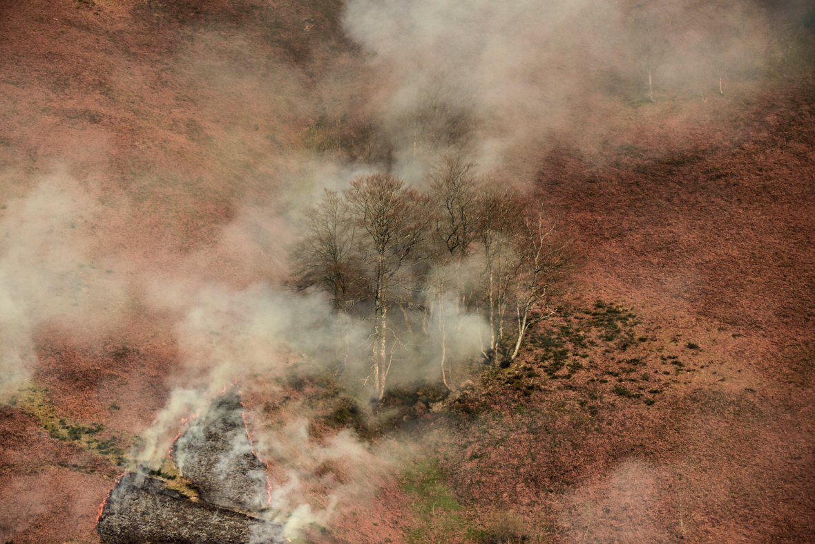 Les palpitations de mon cœur se font de plus en plus intenses, je ressens une chaleur ambiante se refléter sur les roches environnantes, tandis que mon corps crispé commence à deviner des effluves irritants. L’horizon se gorge d’une atmosphère inhabituelle : les feux pastoraux, aussi appelés écobuages, sont en action pour redessiner les alpages. Accroché aux cimes, un panache de fumée esquisse un tableau dévastateur.