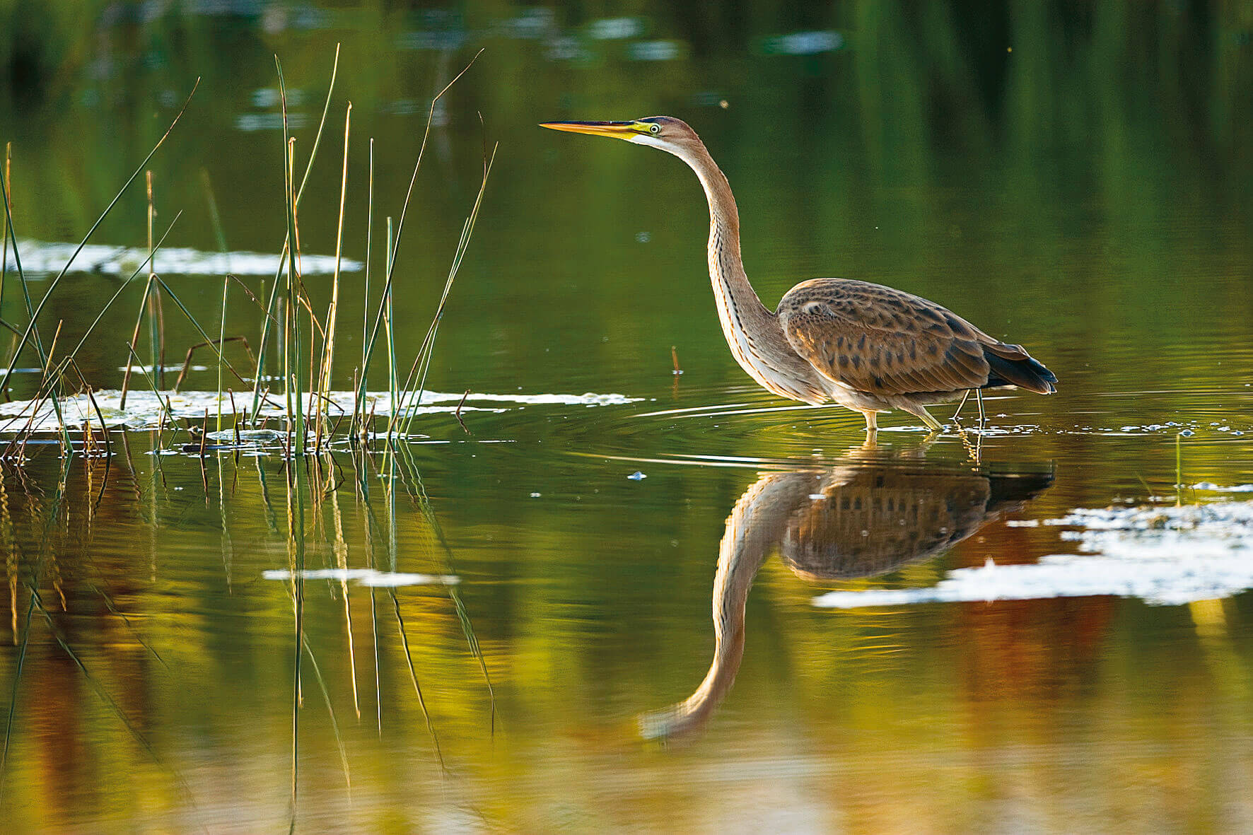 Le marais entre Gletterens (FR) et Chevroux (VD) fut autrefois le fief du héron pourpré. A peine plus petit que le cendré, cet échassier de couleur brun-roux a des exigences plus élevées. Il est intimement lié aux vastes étendues marécageuses.