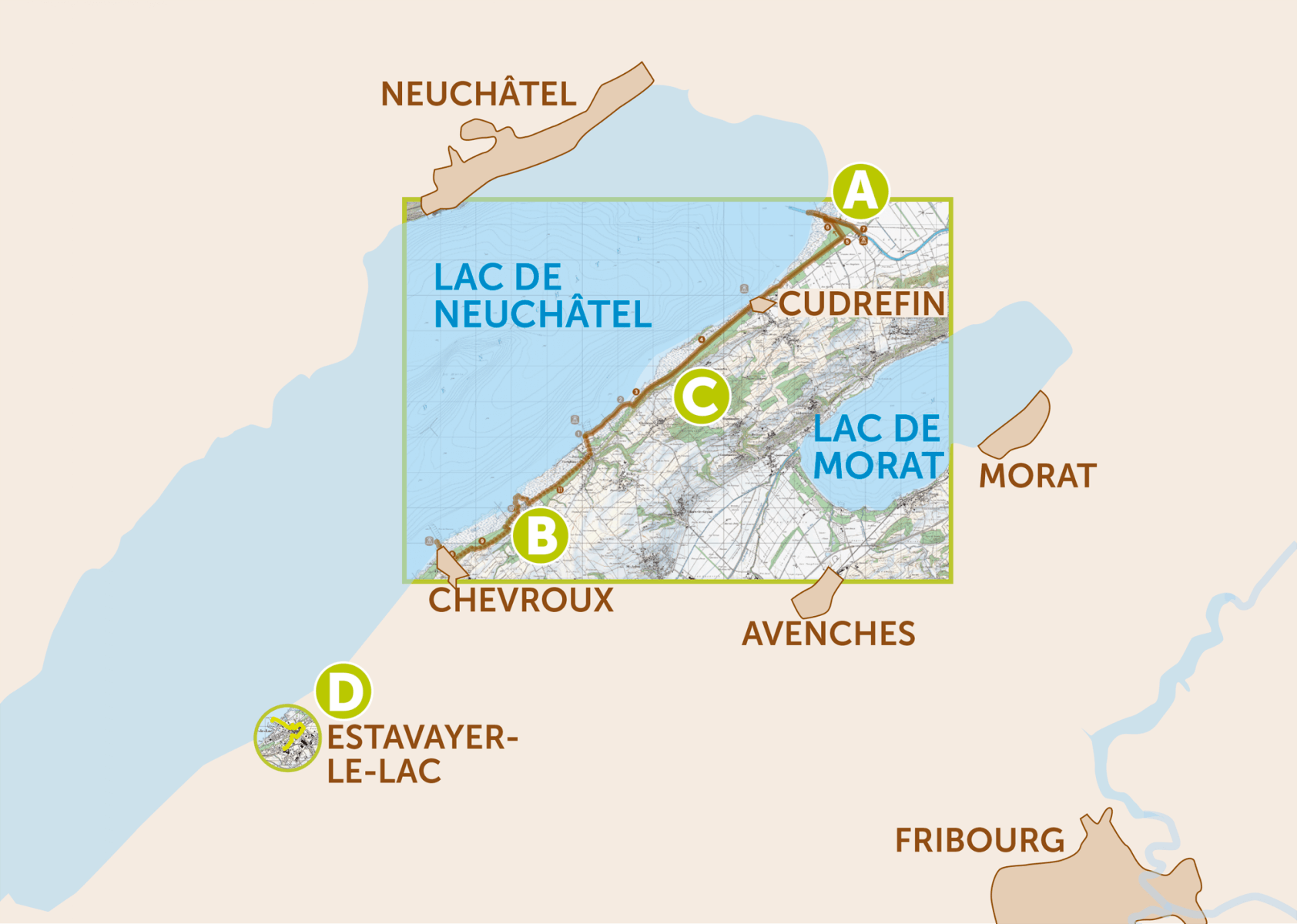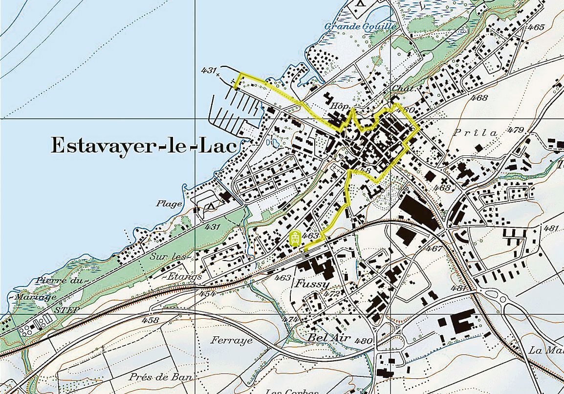 D) Une ville de seigneurs « Si vous arrivez en gare d’Estavayer pour votre balade, empruntez le Circuit des Remparts pour vous rendre au port. Estavayer-le-Lac est l’une des plus belles bourgades moyenâgeuses de Suisse romande. Compter 40 minutes pour l’itinéraire proposé en vignette. »