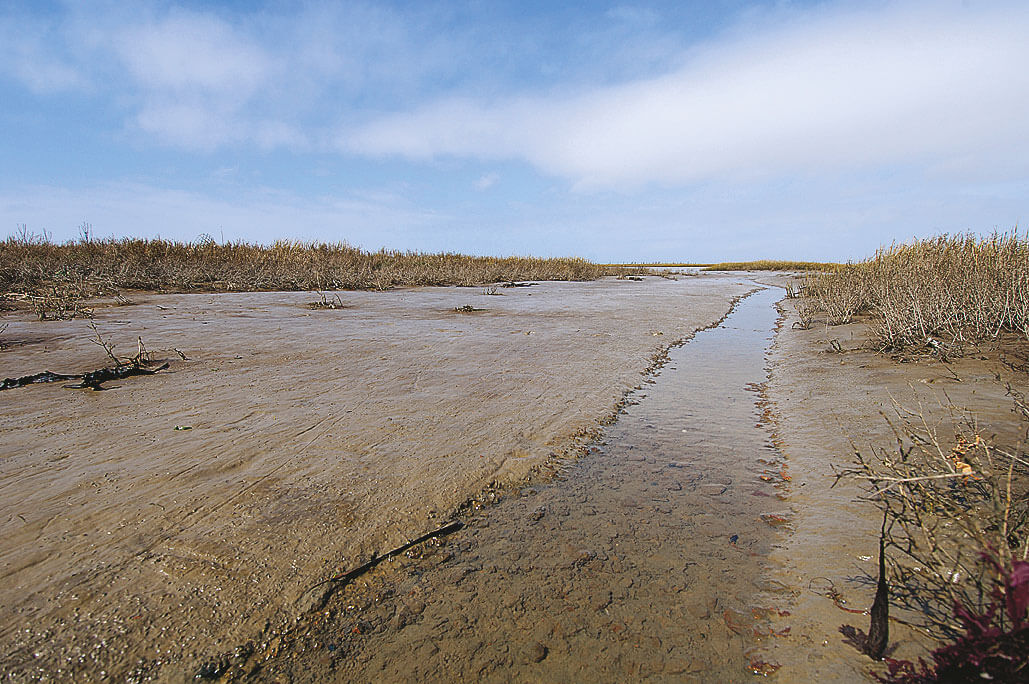 Discrets ou gigantesques, les marais salés caractérisent le littoral de la mer du Nord, de la Manche et de l’Atlantique. Ils se forment principalement dans les baies abritées, à l’embouchure des ruisseaux et dans les estuaires. A chaque marée, deux forces s’y rejoignent lentement, celles de la mer et de la rivière, qui toutes deux charrient et déposent sur le sol leur lot de sédiments et de matières organiques. La décomposition et la fermentation de celles-ci donnent naissance à la vase, qui noircit ou bleuit en s’oxydant.