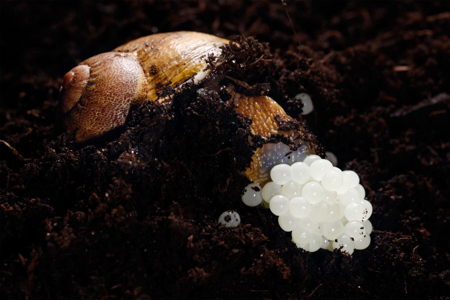 L'escargot de Bourgogne a besoin de quelques siestes et de quelques festins pour se remettre de ses longues amours. Deux semaines plus tard environ, les œufs sont mûrs. A la première pluie, il cherche un terrain favorable avec un soin extrême. Abrité, mais pas trop. Humide, mais pas inondé. Meuble pour faciliter le chantier. Et si possible près d'un bon garde-manger. Ensuite, notre mère attentionnée balaie soigneusement le sol puis fait mine de creuser simplement en poussant par terre avec une force peu banale. Et ça marche ! Au prix de huit heures d'un travail acharné, l'escargot fore une galerie d'environ huit centimètres de profondeur dans laquelle il disparaît presque complètement.