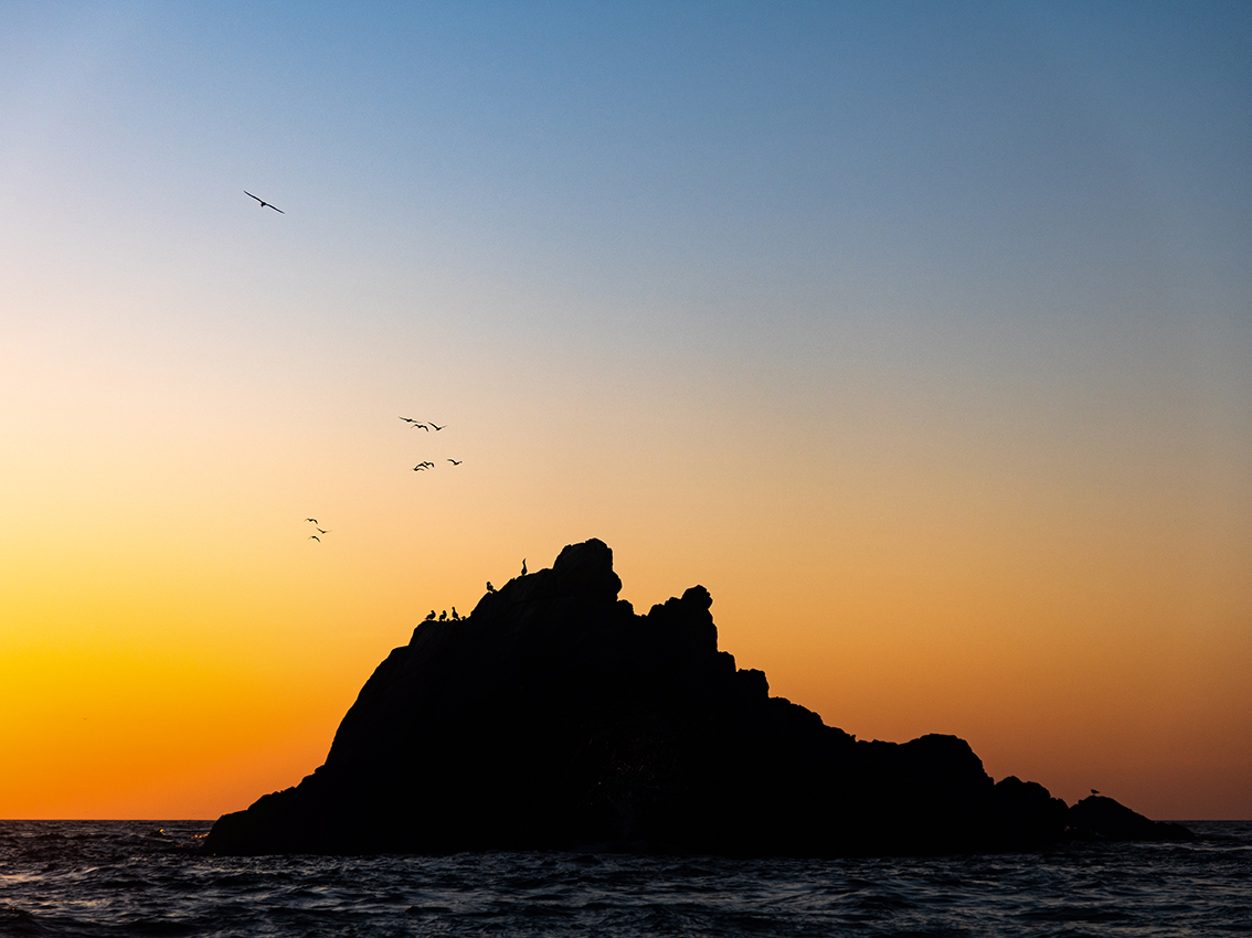 L’archipel étant modeste, tous les oiseaux sont réunis au même endroit. Un spot inégalable pour faire des images. Je pars souvent très tôt pour voir le lever de soleil illuminer la colonie… C’est magnifique ! De loin, l’île est toute blanche, car recouverte de guano. Quand on approche, un tourbillon d’oiseaux envahit le ciel.