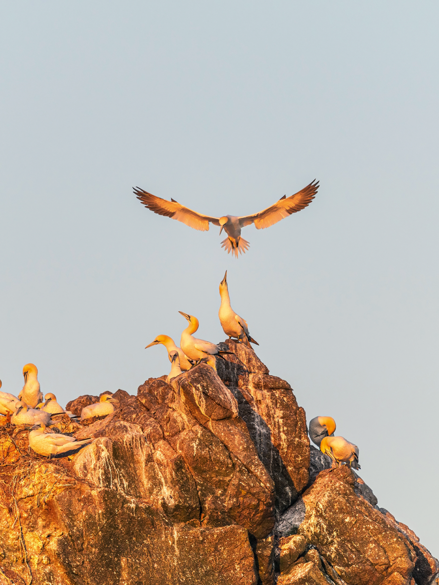 Ce sont les colonies anglaises de fous de Bassan, très abondantes, qui ont commencé à coloniser cet îlot. Les oiseaux y sont à l’abri des prédateurs, notamment les rats qui mangent leurs œufs. Lors de mes excursions, il m’arrive aussi d’observer des guillemots de Troïl et des pingouins torda. Des phoques gris sont également établis ici. Il est d’ailleurs interdit de mettre pied à terre pour protéger la biodiversité.