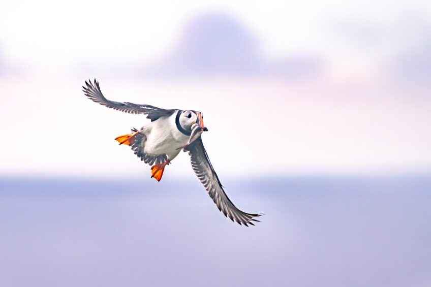 Le macareux moine est capable de transporter dans son bec plusieurs petits poissons à la fois pour nourrir son poussin. Il capture toutes ses proies en une seule immersion. Cet oiseau plongeur pond son unique œuf au fond d’une galerie creusée dans la terre à une profondeur de 1 à 2 m.