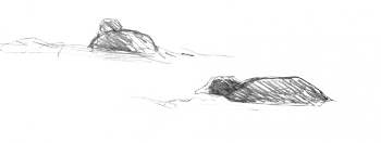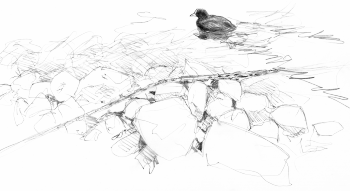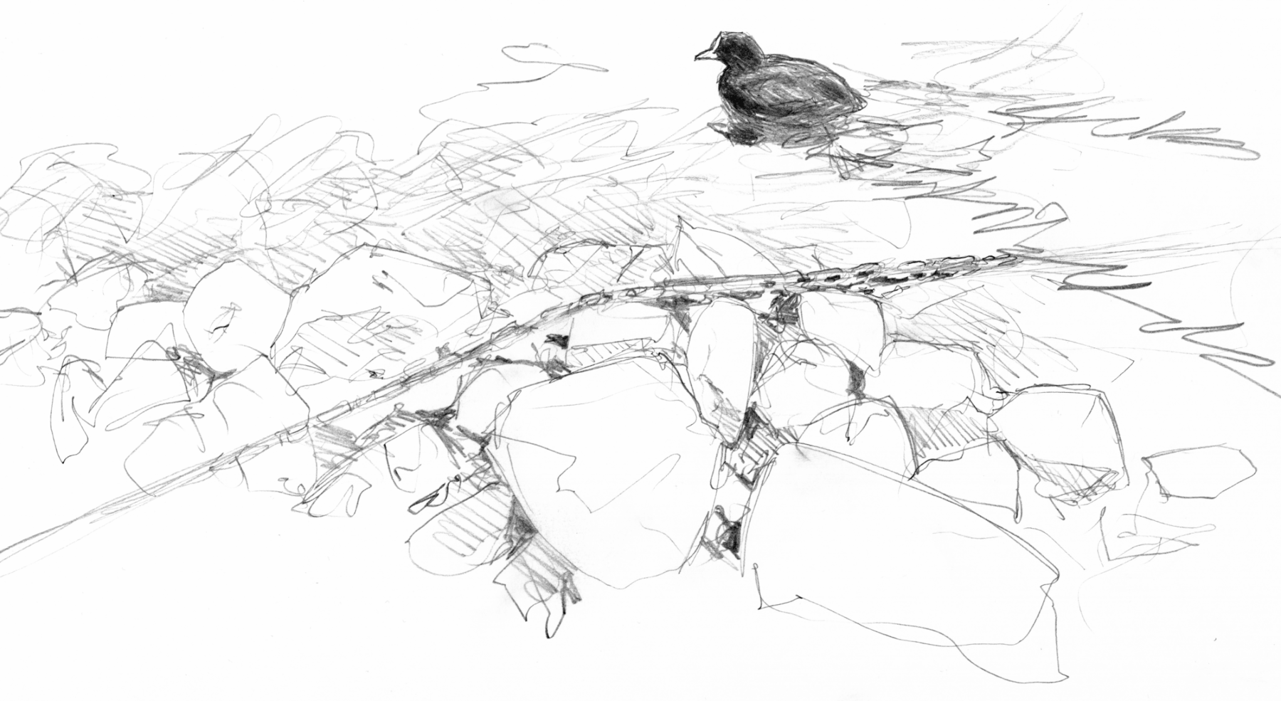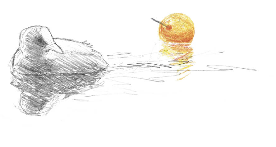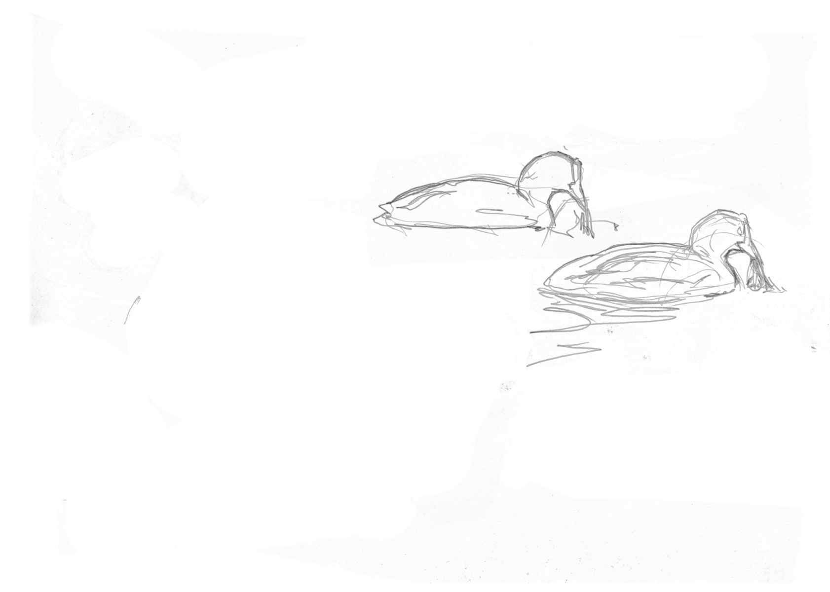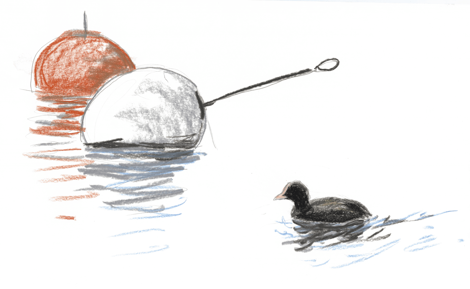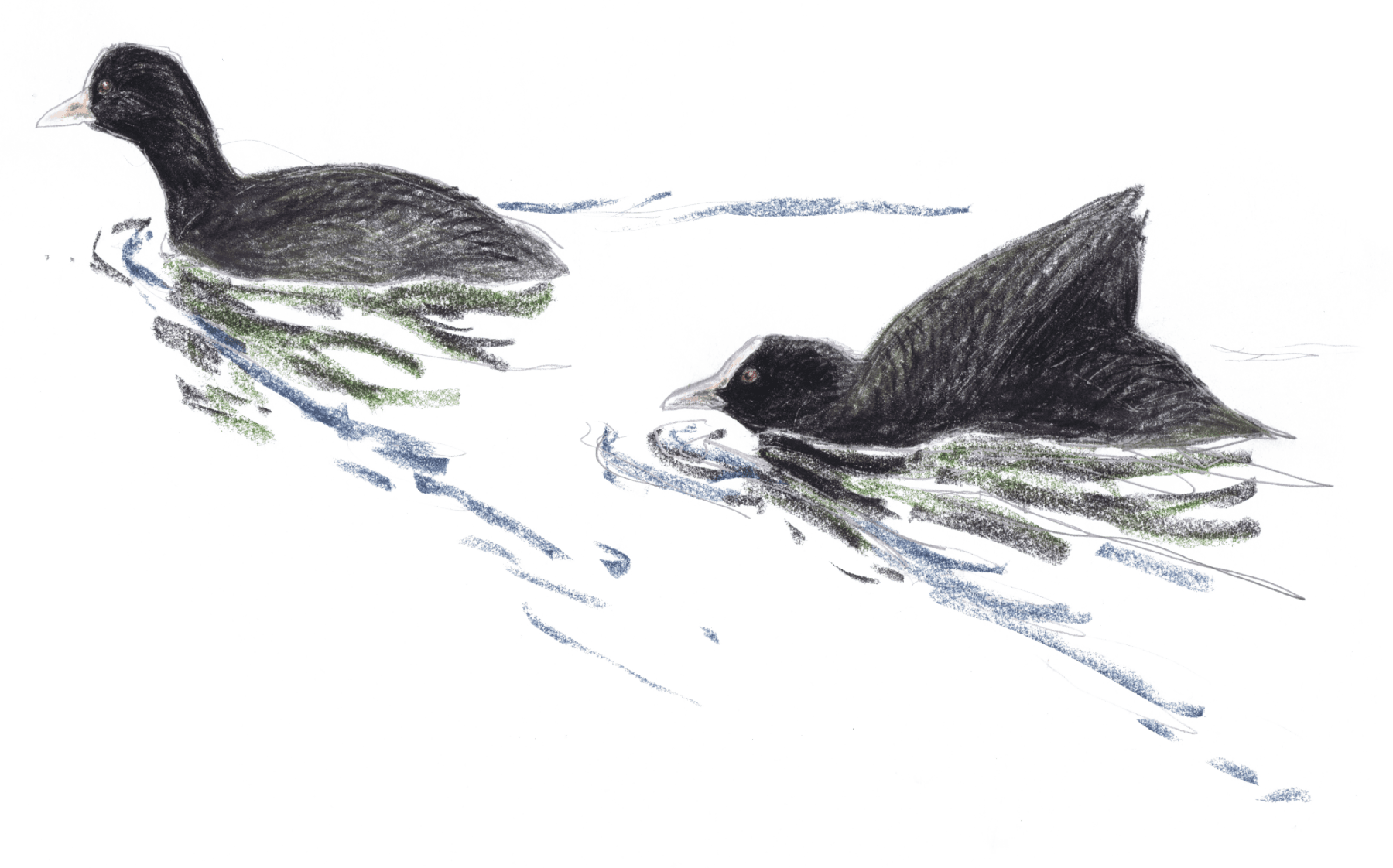 Tantôt sous-marins, tantôt corvettes, les foulques se livrent à des joutes navales en miniature. Un peu d’animation bienvenue dans la grisaille, avec le peintre Jérôme Gremaud.