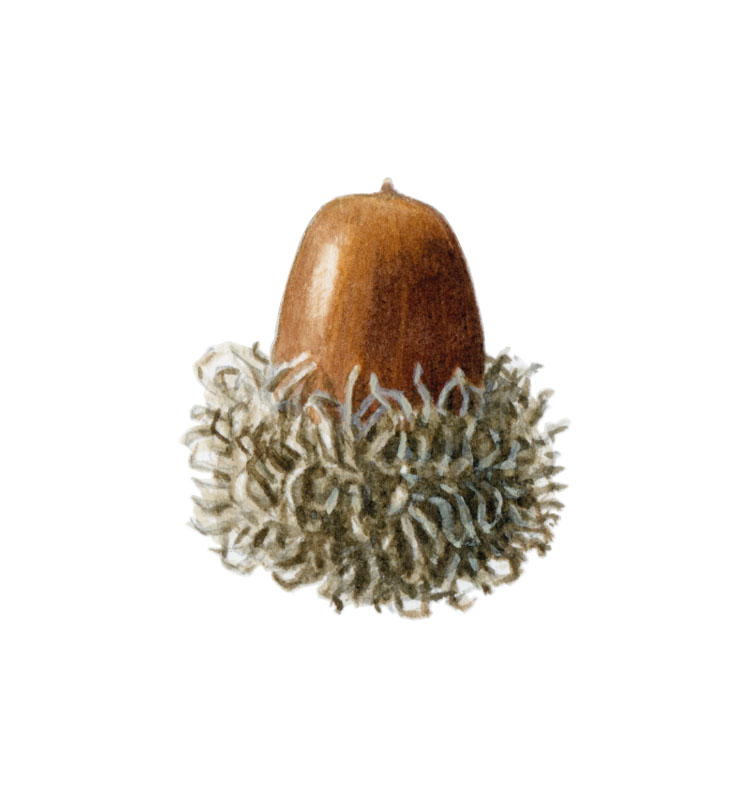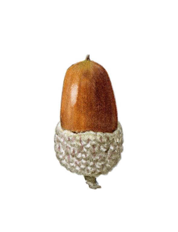 Le fruit du chêne est facilement reconnaissable : une forme ovoïde de couleur brune à maturité, surmontée d’une cupule. Les glands tombent de l’arbre en septembre, et peuvent être récoltés jusqu’en octobre ou décembre selon la variété du chêne. Leur taille varie entre 1,5 et 4 cm.