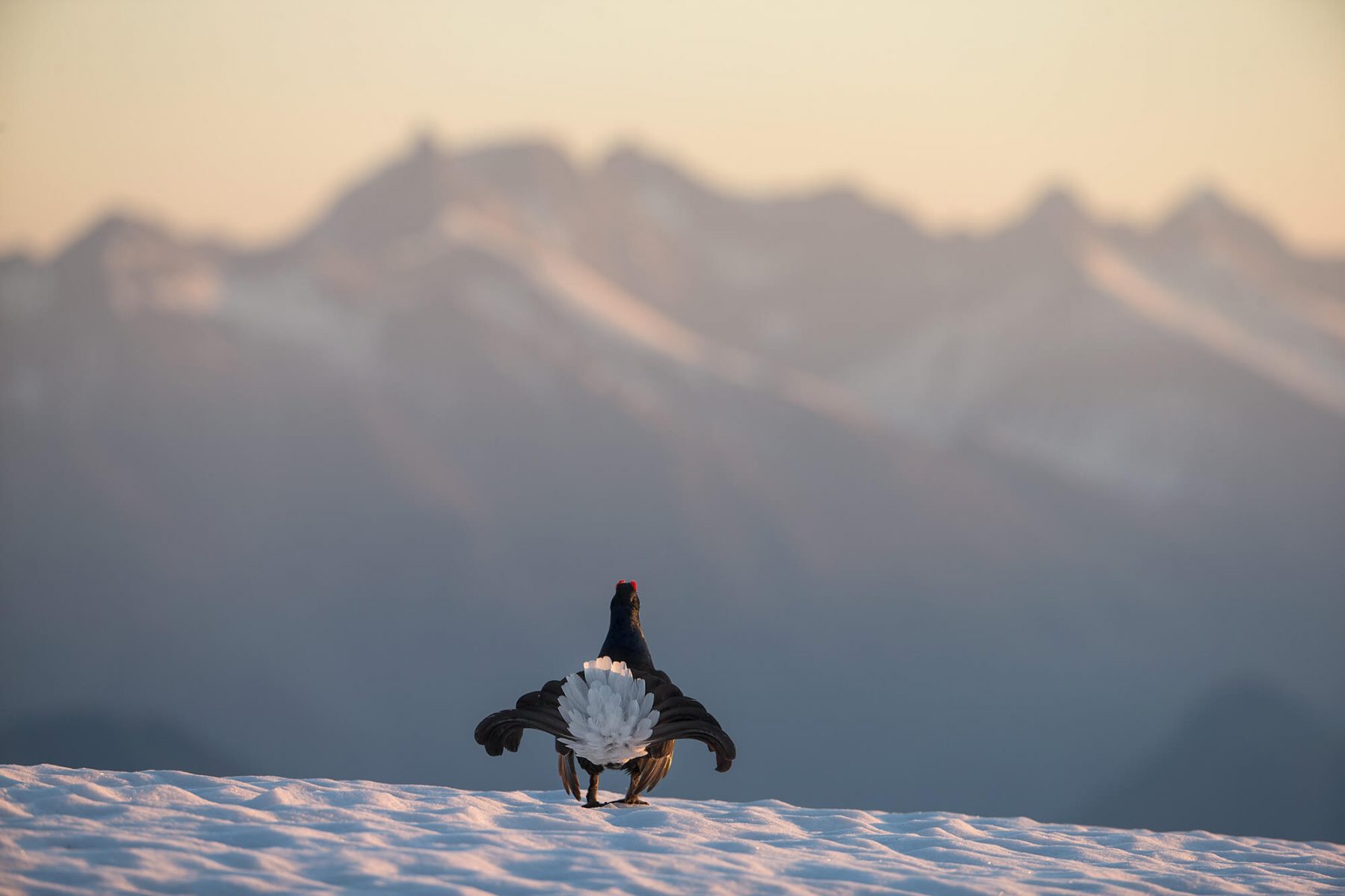 Je fais énormément de repérages avant de choisir mes endroits d’observations dont je limite le nombre à 5 ou 6 pour chaque animal. En revanche, je les connais très bien. Quand je dois dresser un affût, j’arrive toujours la veille pour limiter au maximum le dérangement. Je m'installe au bord de la place de chant ou de danse, et jamais en plein milieu. C’est mieux pour la tranquillité de l’animal mais aussi pour la qualité des prises de vues. Tétras lyre et perdrix bartavelle s’observent uniquement en étant caché et lors de la parade nuptiale, au printemps. Généralement, ils reviennent plusieurs matins de suite au même endroit. L’animal le plus difficile à approcher est la perdrix bartavelle car, contrairement au tétras lyre, elle peut changer de zone de chant d’une matinée à l’autre.