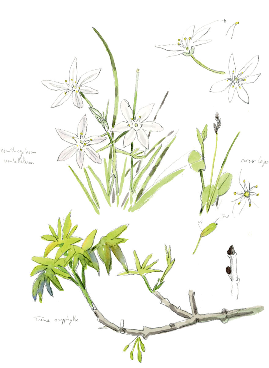 En cette fin avril, convenons-en, le drame n’est pas évident à remarquer. Je constate que des samares de l’année dernière, partiellement dégradées, jonchent la litière. Ces fruits ailés ont amusé des générations d’enfants de leurs virevoltes hélicoïdales. Les jeunes plants que certaines de ces graines voyageuses ont fait germer surgissent en tout lieu. À croire que rien ne peut entraver la vigueur légendaire du frêne. Là où ils ne sont ni broutés ni coupés, les arbres adolescents forment un bosquet ou un prélude de haie en quatre ou cinq années à peine. Dans le paysage qui s’offre au regard, Fraxinus est omniprésent, de la pelouse calcaire aux berges de la rivière en passant par les jardins, bords de route et pâtures.