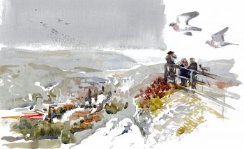 Très tôt, le matin du 7 octobre. Les conditions sont réunies pour tenter une des plus belles expériences nature de la saison. Après trois jours de pluie, une légère bise dégage enfin le ciel et souffle sur les brumes qui se prélassent dans la plaine. A l’oreille déjà, je détecte quelques tsip et des cris roulés. Je me prépare au grand show gratuit et plein de surprises de la migration des oiseaux. Mais où aller ? Là où la vue porte, au sommet d’une colline ou dans l’axe d’une vallée. Pas d’inquiétude, les acteurs et figurants de ce ballet aérien donnent leur représentation un peu partout. Pour cette fois, rendez-vous sur le belvédère le plus proche. Jumelles, casse-croûte, carnet de terrain, guide d’identification… tout est prêt. Attention, l’immobilité et le vent auront raison de mon indispensable patience si j’oublie gants, bonnet et thermos de boisson chaude.