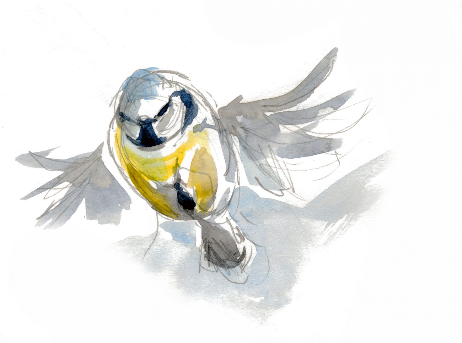Les pages du carnet se remplissent et tournent les unes après les autres. Déjà 41 espèces ! Pipit farlouse, grand cormoran, busard Saint-Martin, geai des chênes, grive draine, alouette des champs… Même les mésanges bleues migrent. Par petites troupes d’une dizaine de voyageuses, elles déambulent de buissons en arbres et d’arbres en buissons. Leur direction ne laisse pas de doute, sud-sud-ouest, comme tout le monde ce matin.