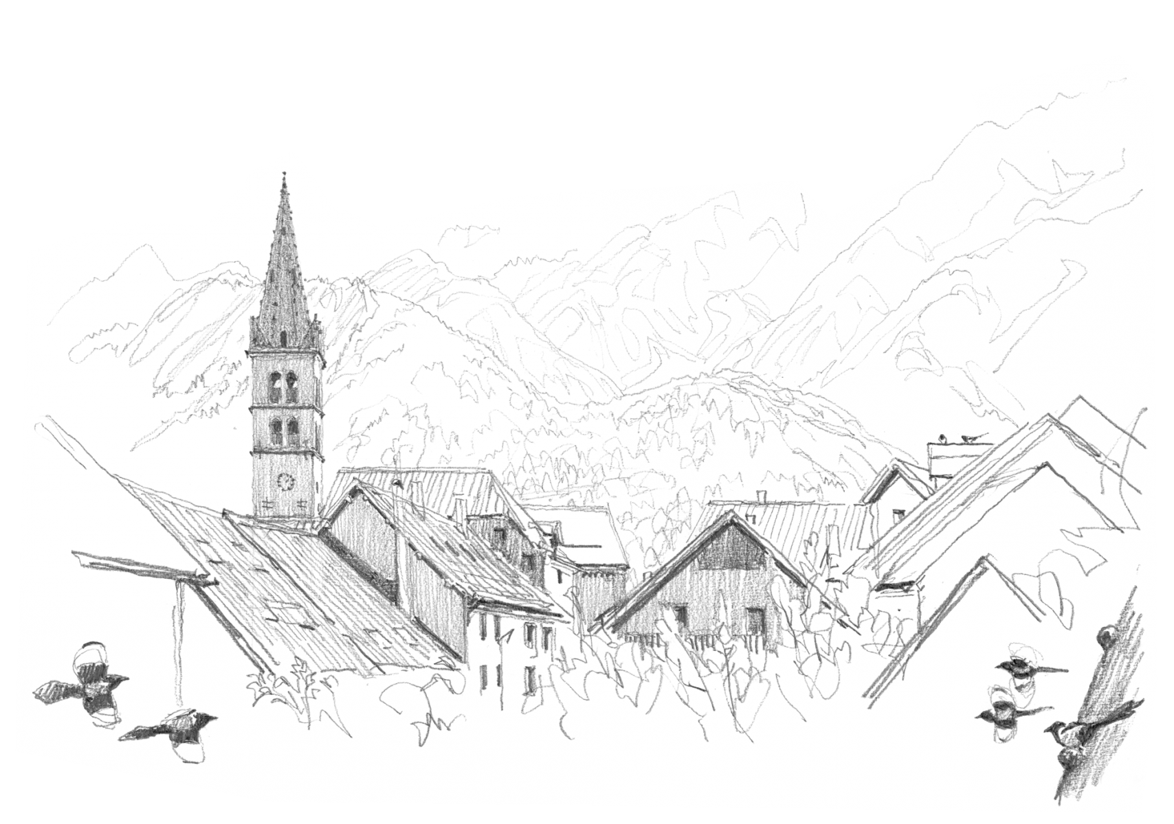Dessins NatureLa pie bavarde fuit dans les villes