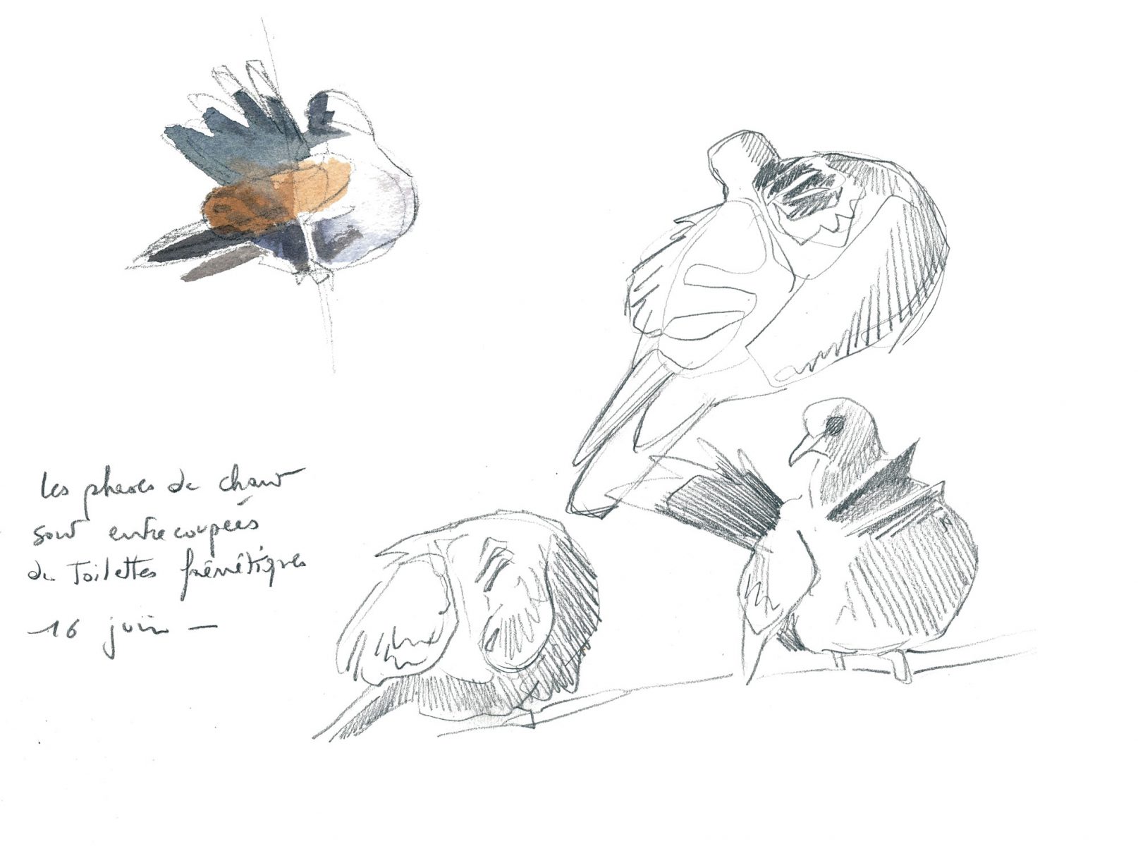 Août écrase la campagne à coups de 30 °C. Côté musique, le chant suraigu des grandes sauterelles vertes fend le silence avec rythme. Côté couleurs, les fleurs rosées des liserons enchevêtrés rivalisent avec le jaune sécheresse omniprésent. Tout est grillé, l’herbe comme la forêt. L’automne arrive à grands pas et, avec lui, peut-être enfin la pluie. En attendant, les heures de soleil se réduisent et concèdent chaque jour un peu plus de répit. Sur les lignes électriques qui sillonnent le vallon champêtre, de nombreux oiseaux sont rassemblés. Je note 200 étourneaux, 8 bruants jaunes, 3 faucons crécerelles… et une poignée de tourterelles. Avec stupeur, je réalise soudain qu’il s’agit seulement de ma troisième observation de tourterelle des bois cette année. La première était une migratrice précoce affrontant la bise le 18 avril, la deuxième, un chanteur timide dans une forêt riveraine le 23 mai. Le doux et lancinant roucoulement de cet oiseau a de tout temps bercé le début de l’été, pourquoi fait-il désormais chaque année davantage place au silence ?