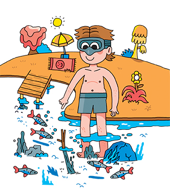 S'il fait chaud ce week-end, choisissez une petite rivière ou un ruisseau propre et clair. Là où vous avez pied, enfilez masque ou lunettes de plongée et… mettez la tête dans l’eau ! Rafraîchissement garanti et observations des petits poissons dans le fond : chevesnes, goujons…