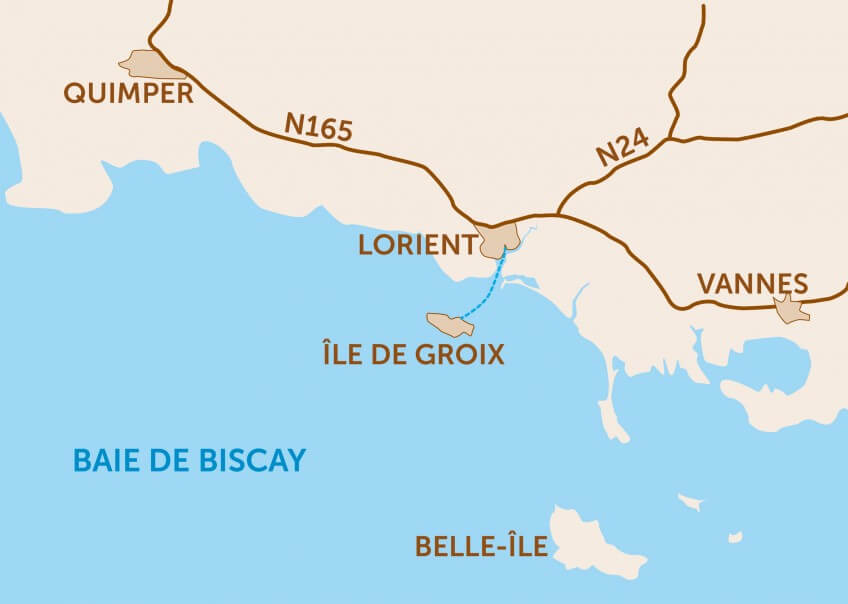 En bateau: navettes journalières depuis Lorient (u 45 min), Compagnie Océane +33 (0)8 20 05 61 56, compagnie-oceane.fr