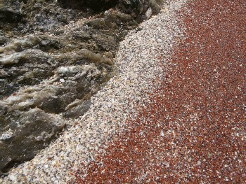 - (3) Plage des Sables Rouges. Des poussières de grenat, un minéral rouge, s’y déposent surtout lors des tempêtes.