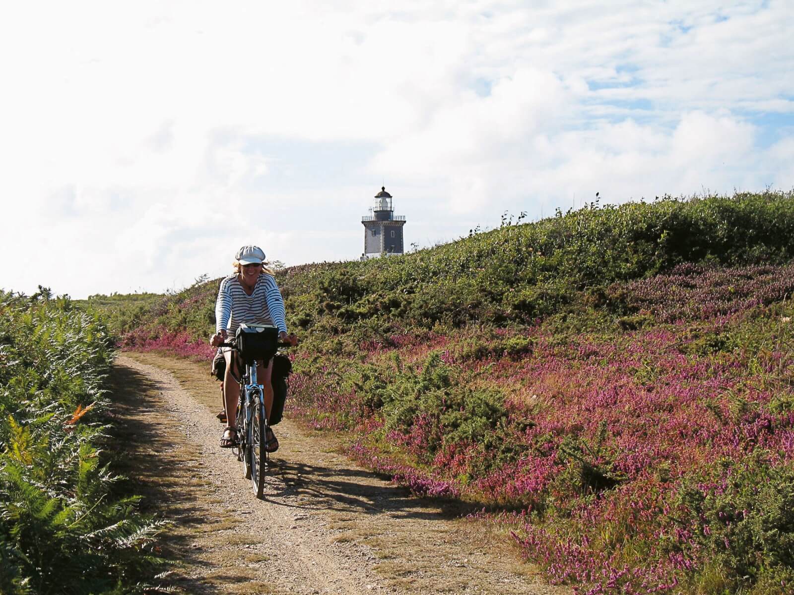 Les mains sur les freins et les yeux rivés au sol, je conduis prudemment ma bicyclette entre deux remparts de prunelliers et d’ajoncs. Par miracle, les pneus ont pour l’heure échappé aux épines. Je profite d’un replat pour poser le pied et relâcher un instant ma vigilance. La mer est encore invisible, mais omniprésente dans l’odeur des fougères et du vent. Patience. Sur l’île de Groix, l’océan est toujours à portée de pédales.