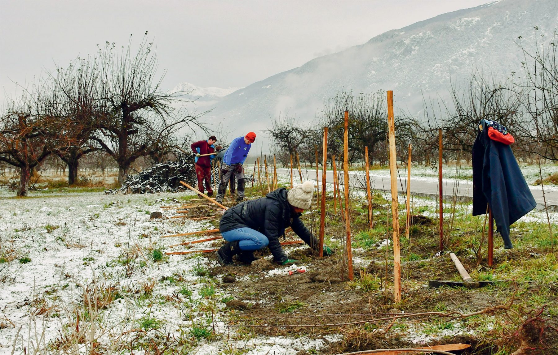 Malgré la grisaille qui couvre la vallée en ce matin de décembre, une vingtaine de bénévoles se retrouvent pour prêter main-forte à l’équipe du WWF Valais. Thé et café sont les bienvenus, car la matinée s’annonce chargée : plus de 500 plants de viornes, églantiers, nerpruns et autres arbustes indigènes doivent être mis en terre sur un terrain situé entre le Rhône et la Borgne, à 2 km à l’est de Sion.