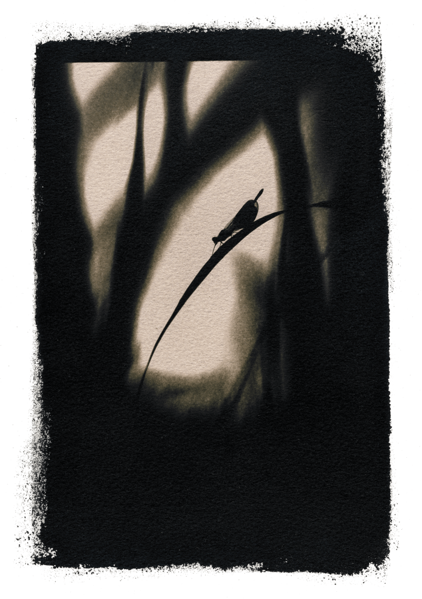 Pour quitter l’univers du bleu, le photographe arlésien a fait virer ses cyanotypes en les immergeant dans du thé. Voilà comment l’artiste a retrouvé l’émotion ressentie lors du déclenchement de ses photographies. Le résultat obtenu est un hommage noble à l’instant nature. L’artiste revendique ces images qui assument la silhouette de l’animal. L’atmosphère qui s’en dégage transporte aux confins des arts plastiques et de la photographie.