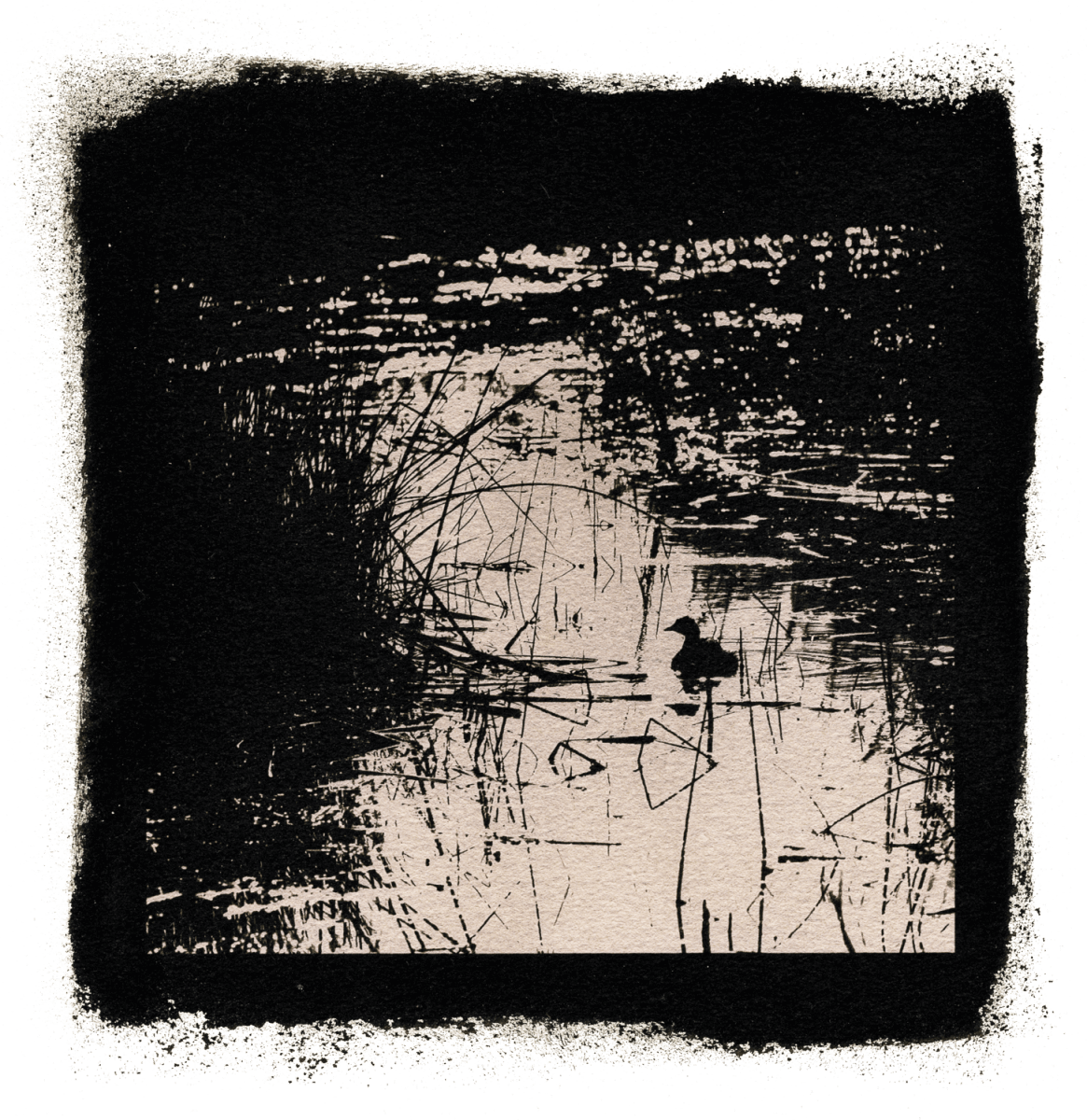 Un cyanotype, mais qu’est-ce donc ? Une sorte de monochrome obtenu par une technique datant de plus de 170 ans. La recette consiste à mélanger en volumes égaux une solution de ferricyanure de potassium et de citrate d’ammonium ferrique. Appliquer le produit obtenu au rouleau sur un papier et laisser sécher. Plaquer ensuite contre le négatif de la photographie dans sa taille définitive de tirage. Exposer ensuite au soleil. Grâce au rayonnement ultraviolet, on obtient après cinq minutes environ une image dans les tons bleu de Prusse à bleu cyan. David Tatin a multiplié les essais, éprouvé son savoir-faire, testé les papiers, apprivoisé le bleu… Mais c’est une autre ambiance chromatique qu’il cherchait pour traduire ses observations. Il voulait se rapprocher de son inspiration première, les gravures de Robert Hainard.