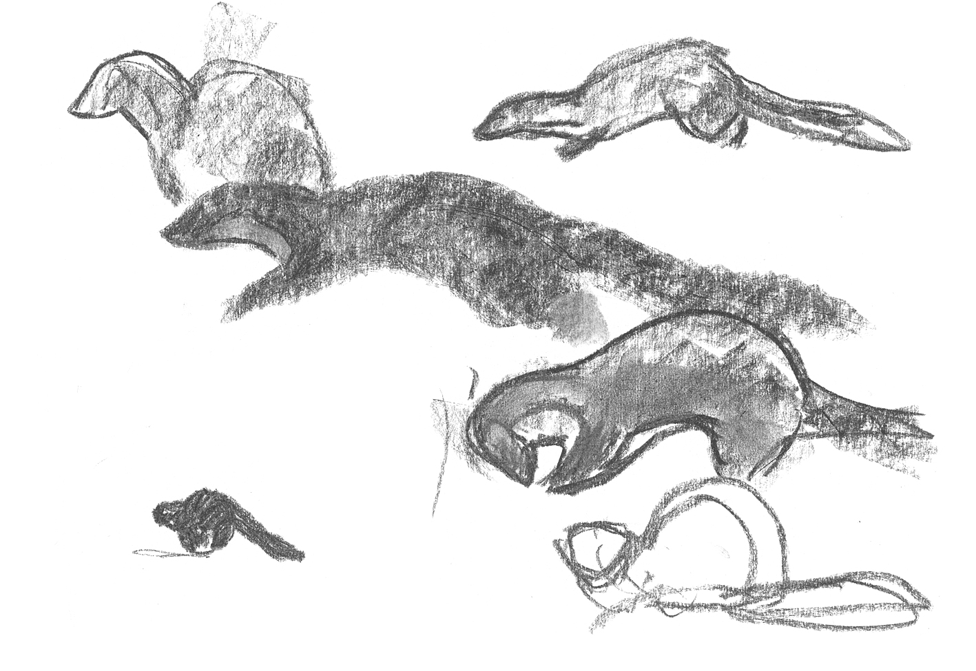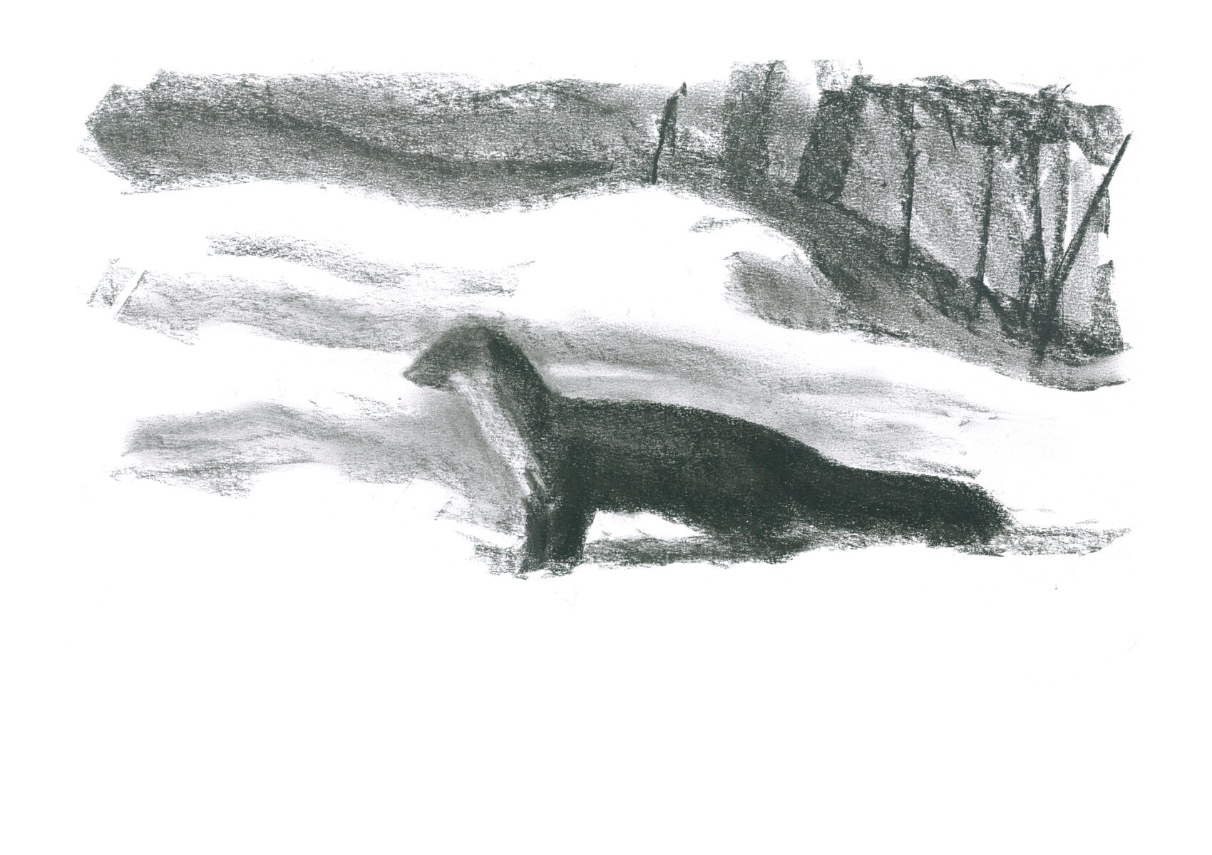 Au coin du bâtiment, une vieille borne en pierre s’est retrouvée coiffée d’une crotte effilée. Amusante convergence des usages : ce repère cadastral sert également au marquage du territoire de la fouine. Des traces dans la neige et quelques excréments, voilà les seuls témoignages de sa présence depuis l’été passé. A cette époque, en revanche, nul ne pouvait ignorer son existence, ou plutôt leur existence. Adultes saisis par la folie du rut et petits de l’année pleins de fougue, le grenier a connu quelques courses-poursuites endiablées. Et puis, les jeunes se sont dispersés, les parents ont mis fin à leurs ébats et le calme est revenu.
