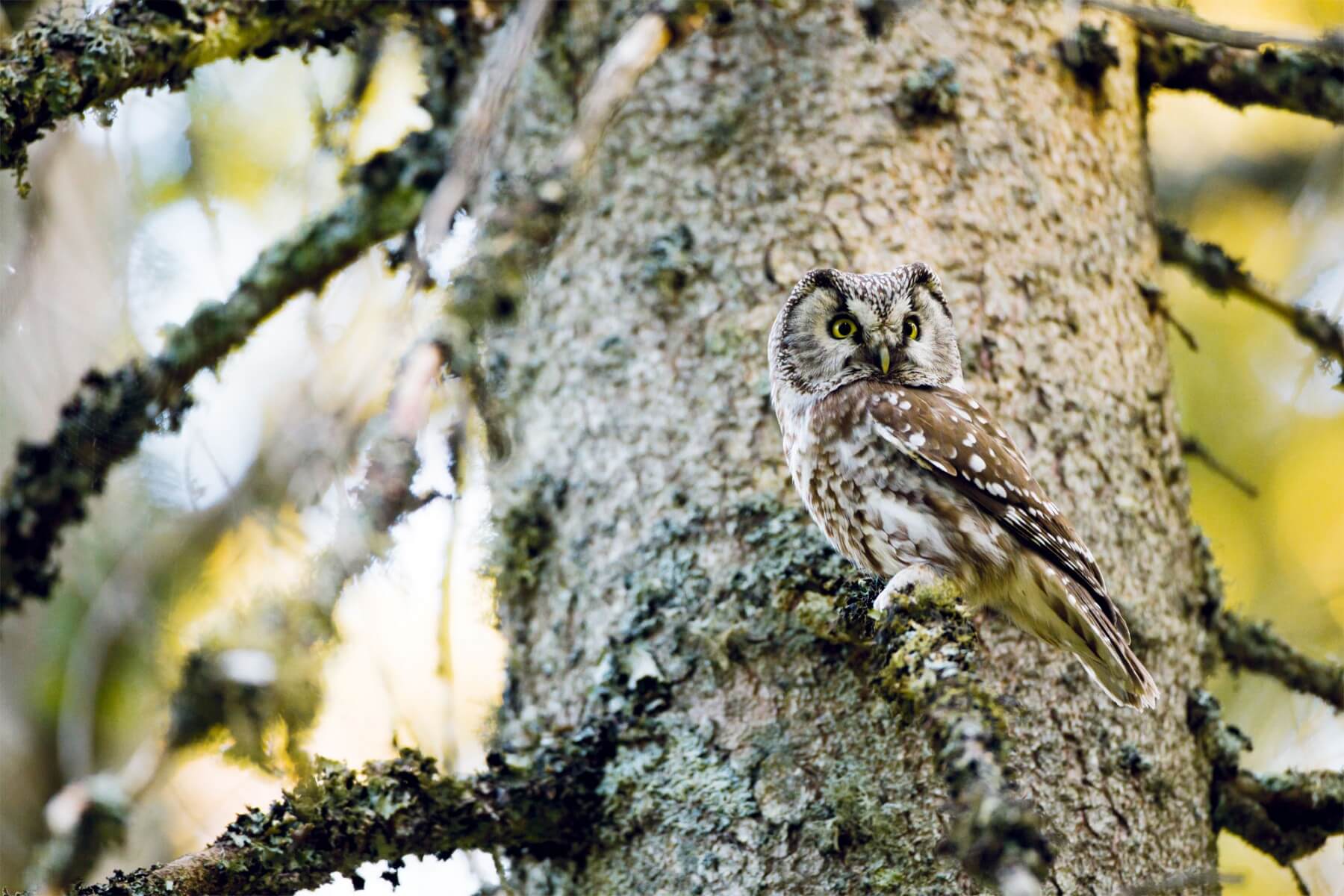 Un moment plus tard, confortablement étendu à la lisière du bois de pins, je contemple la vaste tourbière qui s’endort peu à peu. Au-dessus de moi, les silhouettes des pins se mêlent à celles de plusieurs bouleaux pas encore tout à fait dégarnis. Entre quelques brèves averses de bruine, il me semble presque entendre le silence.