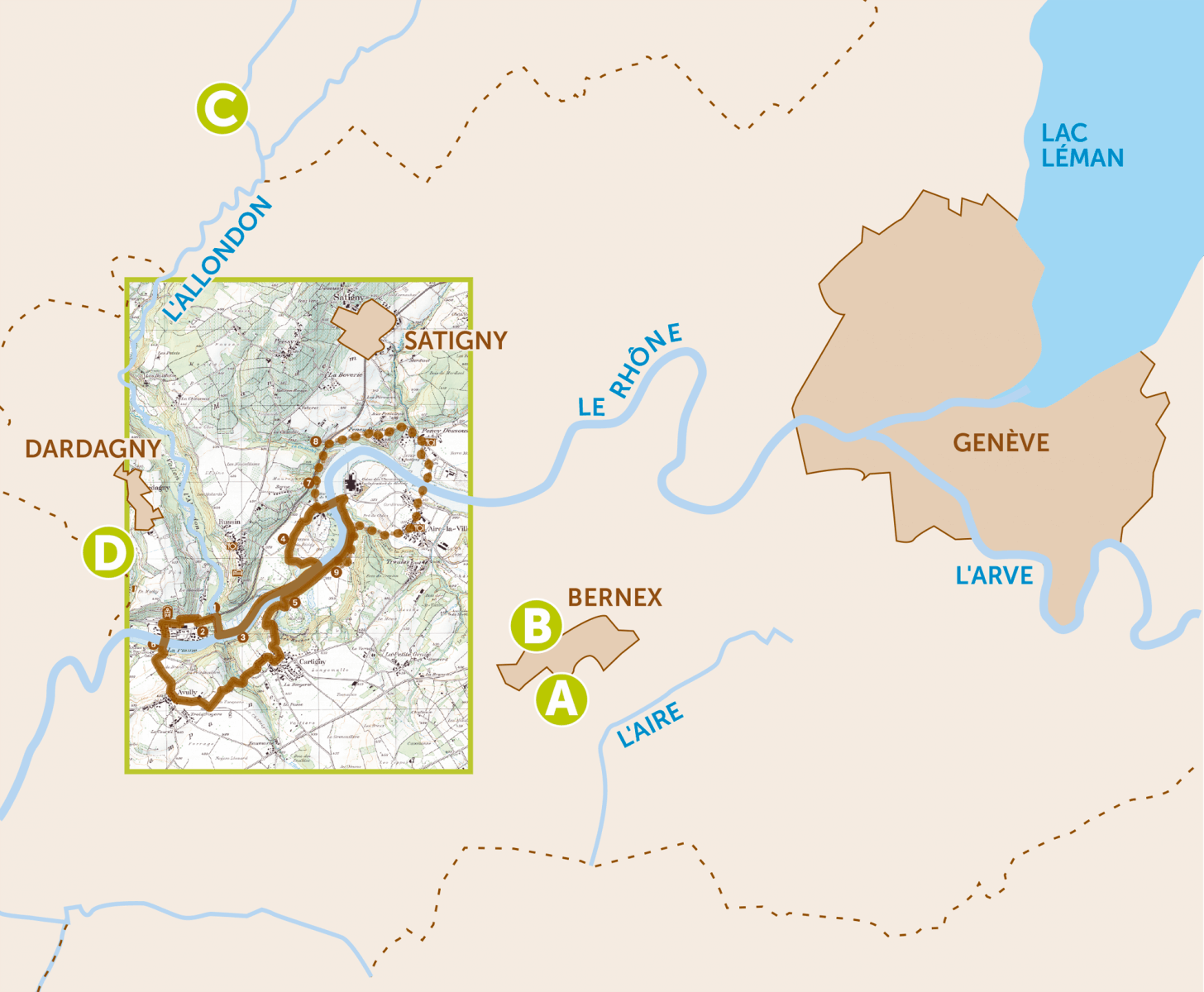 - Depuis Peney-Dessous, revenir par Aire-la-Ville et rejoindre l'itinéraire principal (9).