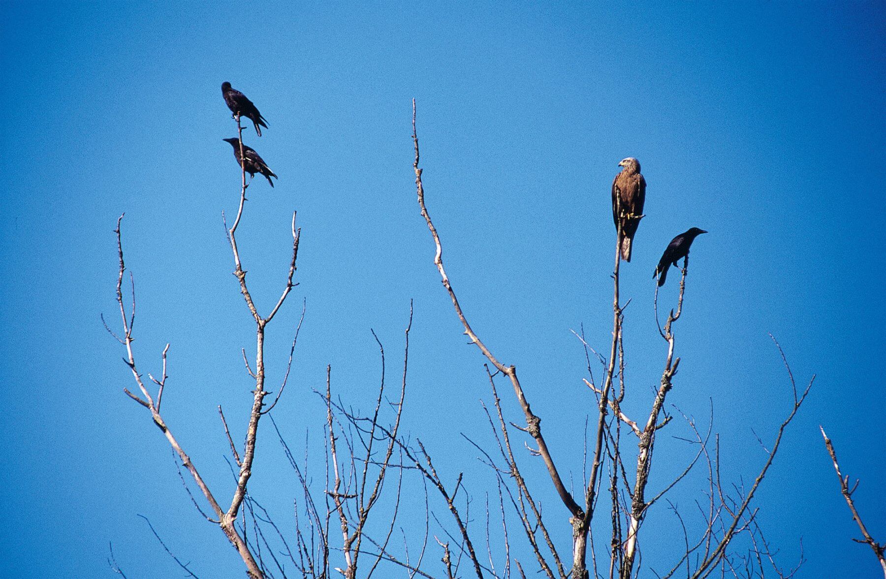 Frégates des airs, les milans noirs sont parmi les plus précoces à regagner les rives du Rhône et ses hauts chênes rouvres. On les entend avant de les voir : leur chant très doux, tremblé, résonne au-dessus de l’onde. Puis on les découvre en vol. Nonchalants, ils planent en ellipses, avant de fondre en vrille, parfois en spirale, sur une proie. Un poisson mort ou mal en point fera l’affaire. Ou encore un serpent, une grenouille, un poussin de canard… voire le barbecue du dimanche midi. Si si, c'est du vécu ! Il faut profiter de leur présence au printemps, car dès juillet, une fois les petits hâtivement formés au vol, c’est déjà un nouveau départ pour l’Afrique.
