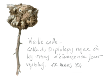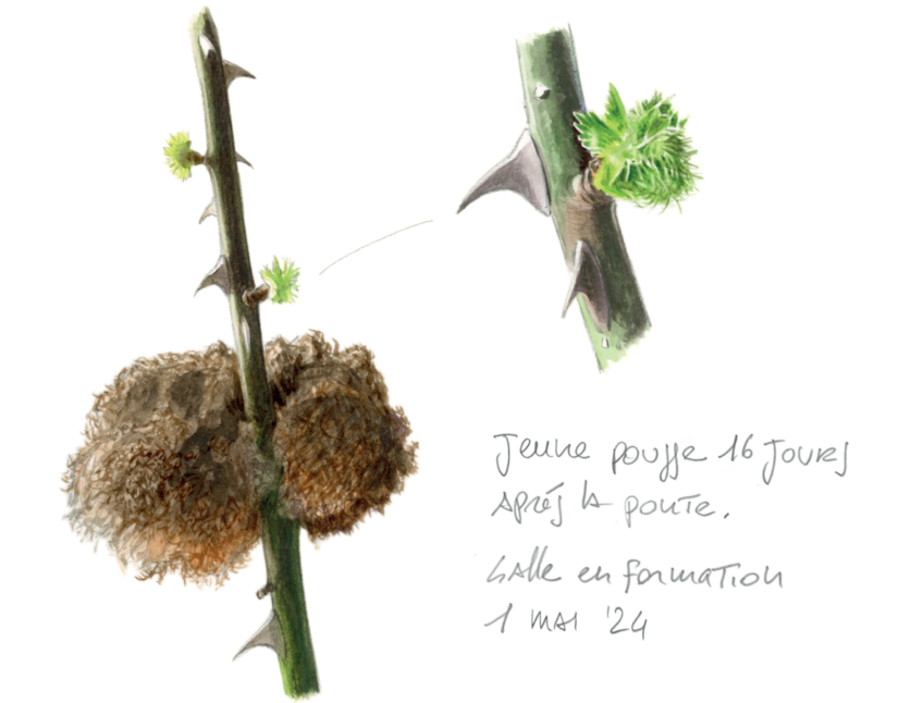 Rassurez-vous, ni la présence de la galle ni le prélèvement d’une partie de la sève ne perturbent l’évolution de l’églantier.