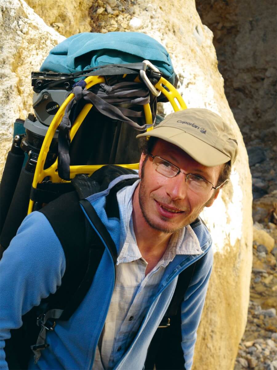 Les poussins ont éclos hier dans la journée. « J'ai vu plusieurs fois la femelle jaillir hors du nid avec un morceau de coquille dans le bec. Mais tout s'est passé si vite ! Impossible de la suivre avec la caméra. » Frank Neveu, naturaliste chevronné et réalisateur autodidacte, vit presque jour et nuit depuis plus de trois ans avec le tichodrome. L'oiseau est très difficile à voir, à plus forte raison à photographier ou à filmer. Même la BBC, référence mondiale du film animalier, n'a pas encore sorti un reportage sur ce qui est pourtant l'un des oiseaux les plus spectaculaires au monde. Seul avec sa passion et sa patience, Frank est sur le point d'y arriver pour La Salamandre. Et c'est lui qui nous guide ce matin sur l'un des sites du tournage.