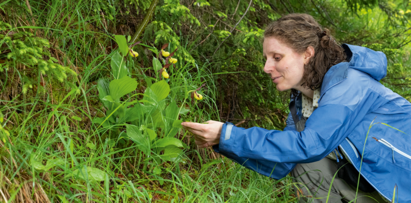 Dans le prolongement de son travail de master, qui visait à identifier des sites de réintroduction propices pour l’espèce, Olivia Rusconi a terminé une thèse de doctorat en 2023 au Laboratoire d’écologie fonctionnelle à l’Université de Neuchâtel. Son objectif ? Développer une marche à suivre qui combine recherche fondamentale et approche pratique pour la conservation des plantes menacées. Le sabot de Vénus est un cas d’école idéal : de nombreuses tentatives de réintroduction ont été menées, mais avec peu de succès à la clé. Car, malgré sa notoriété, on le connaît mal. La biologiste a travaillé d’arrache-pied pour déterminer les facteurs qui influencent la vigueur des populations. Elle a effectué des modélisations spatiales sur la base de relevés botaniques existants, en les croisant avec diverses variables comme les températures ou la distance à la lisière. Cette analyse théorique a été doublée d’une approche plus naturaliste sur le terrain. « Même avec des mailles fines de 25 m, les cartes ne suffisent pas. Une réintroduction peut réussir ou échouer au mètre près, notamment car le sol est très hétérogène », dévoile la chercheuse. Choisir une orchidée comme modèle, c’est aussi se pencher sur un organisme aux exigences très complexes en matière de sol, de climat ou d’alliances avec d’autres espèces. « Si on arrive à protéger le sabot de Vénus, on peut tout protéger », ose la doctorante avec malice.