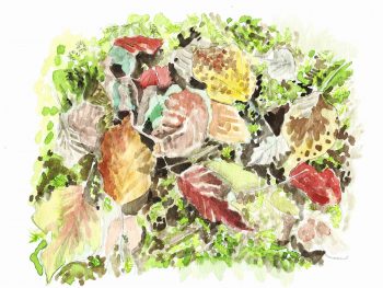La seule manière de laisser novembre faire son oeuvre ? Non ! Voilà bien un papillon géomètre qui batifole sous un lampadaire. Et puis au loin, rompant le silence, une chouette qui conte fleurette. Ce parfum sucré, ne provient-il pas d’une rose toute fraîche ? Et enfin toute cette vie, juste là, grouillante et tapie dans l’ombre de la litière. Elle se nourrit déjà de la défunte feuille du fruitier et promet de la réinventer en primevère.