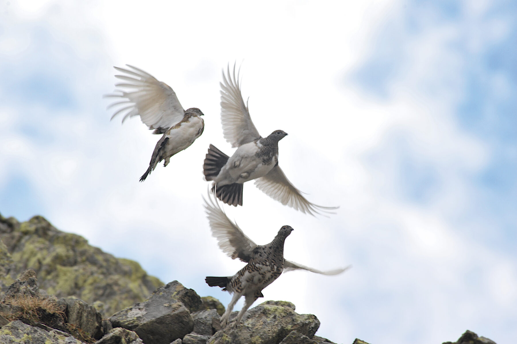 à crapahuter entre les rochers en quête du lièvre variable, de la perdrix bartavelle ou du criquet Popeye. Il y a quelques jours, j’ai d’ailleurs loupé un cliché d’anthologie : un lagopède qui s’envolait devant un bouquetin. C’est décidé, en cette belle journée de début septembre, je pars retenter ma chance sur ce site où cohabitent les deux espèces.