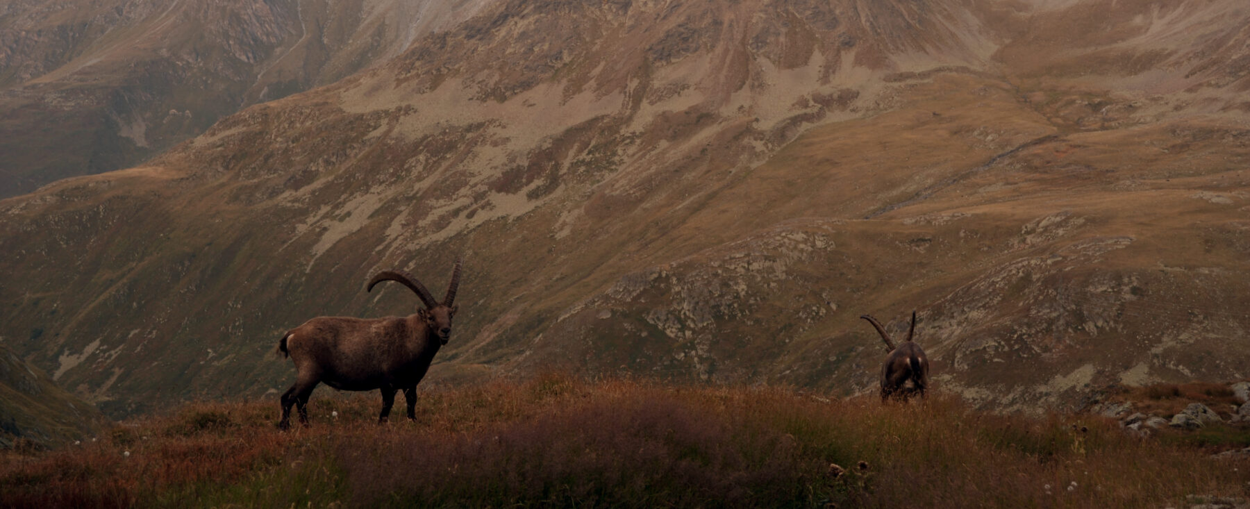 Ils ne prennent pas ombrage de mon retour un peu cavalier. Après tout, nous nous connaissons déjà et les bouquetins sont souvent moins farouches à la tombée de la nuit. Ils me laissent juste le temps de prendre quelques clichés devant le Grand Combin et le mont Vélan baignés d’une lumière cuivrée. Et là, le grand mâle qui mène la harde plonge ses yeux dans mon objectif. Une connexion magique s’établit quelques secondes, avant qu’il ne disparaisse dans la pente. C’est dans la boîte ! Comblé mais en retard, je me hâte vers la vallée entre chien et loup, conscient d’avoir joué avec le feu.