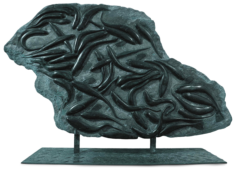 Bronze, 37 x 40 x 35 cm « Presque invisibles, ils étaient accrochés par la queue et se berçaient au fil du courant : ils rêvaient peut-être. »