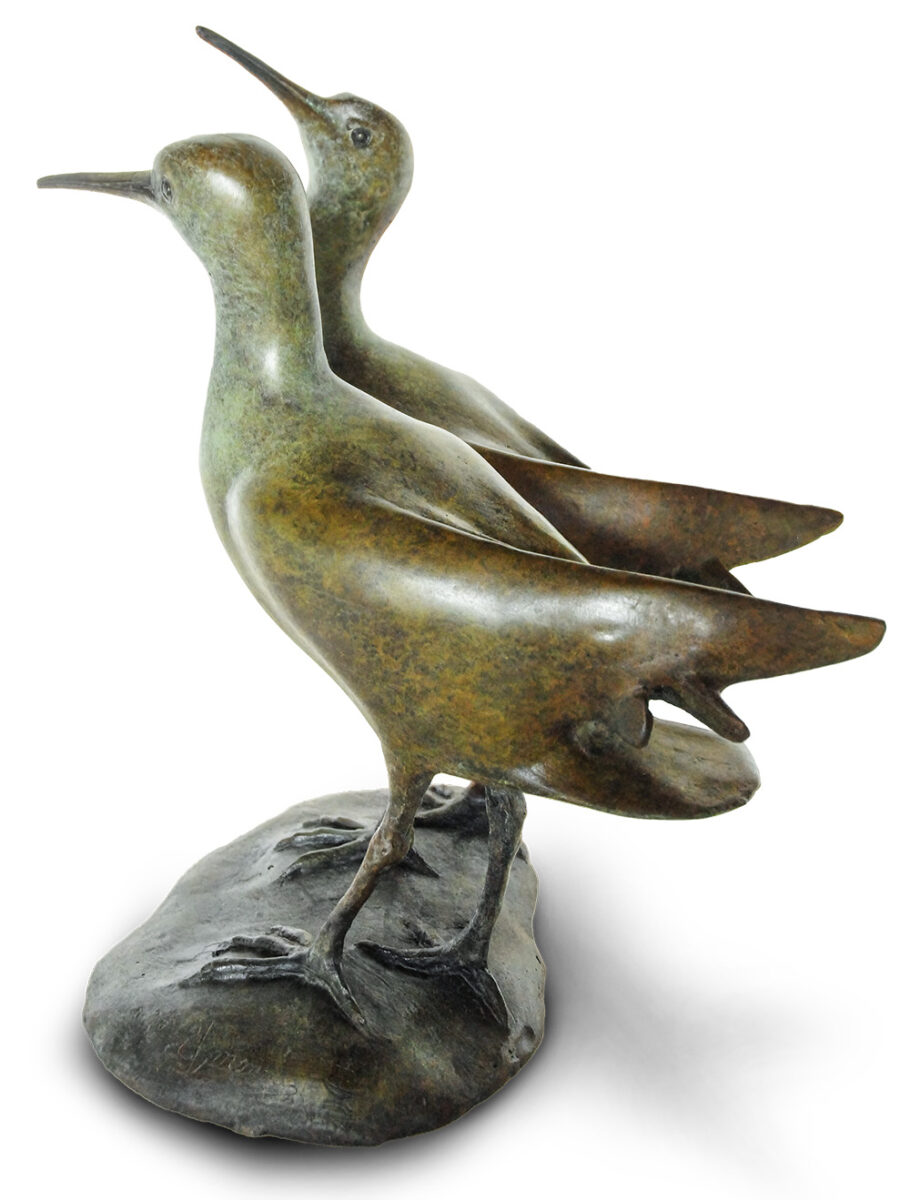 Bronze, 32,5 x 12 x 13 cm « Le plus souvent solitaires sont les chevaliers gambettes. Là, c’est un couple qui parade. »