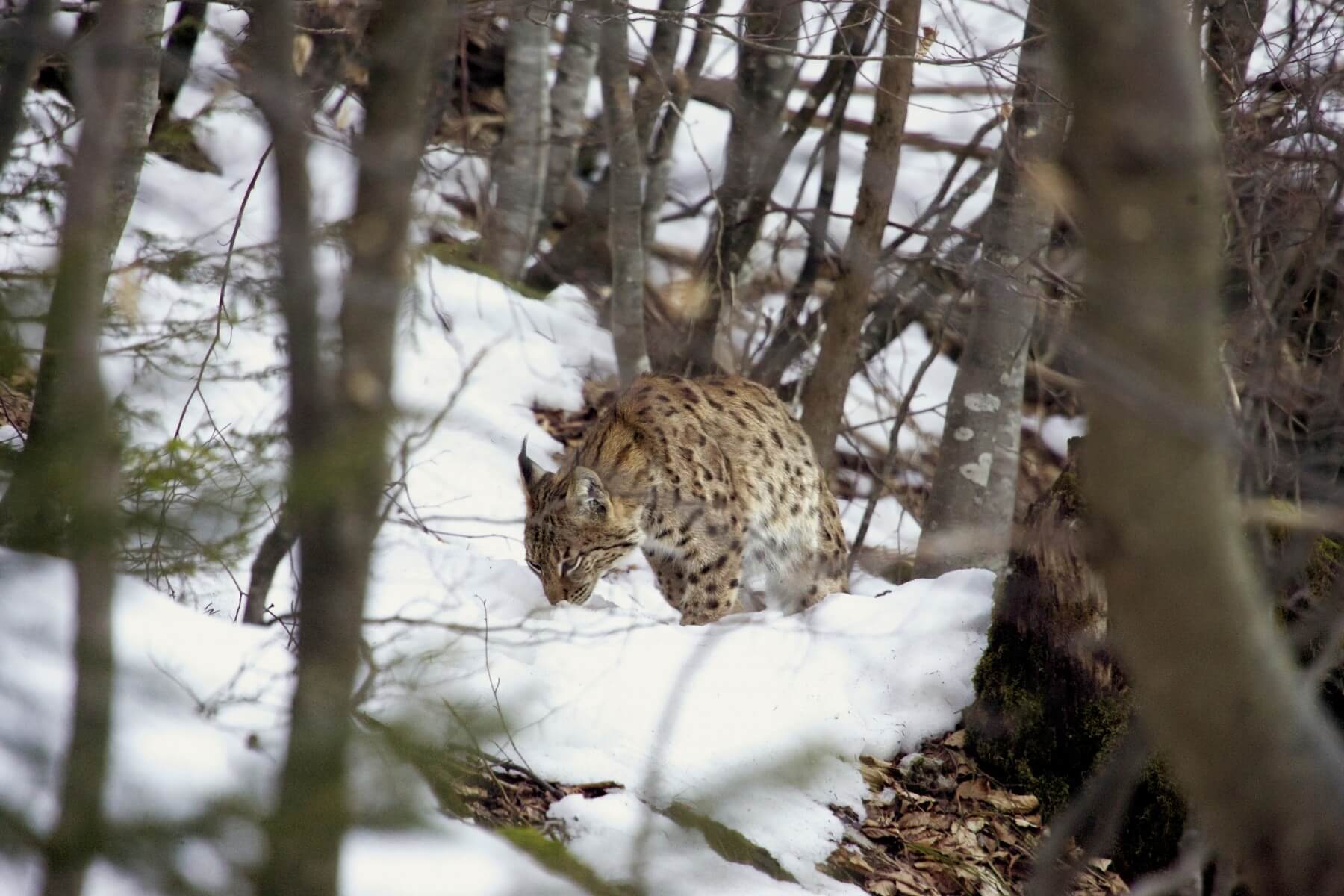 Le lynx boréal, le plus grand félin d'Europe, est un animal territorial et solitaire la plus grande partie de l'année. Le rut se déroule généralement entre mi-février et mi-mars. Les mâles poussent alors des cris caractéristiques et peuvent parcourir plusieurs dizaines de kilomètres en une seule nuit pour trouver une femelle. Pendant les quelques jours que dure le couple, les deux partenaires chassent ensemble. A la fin des accouplements,